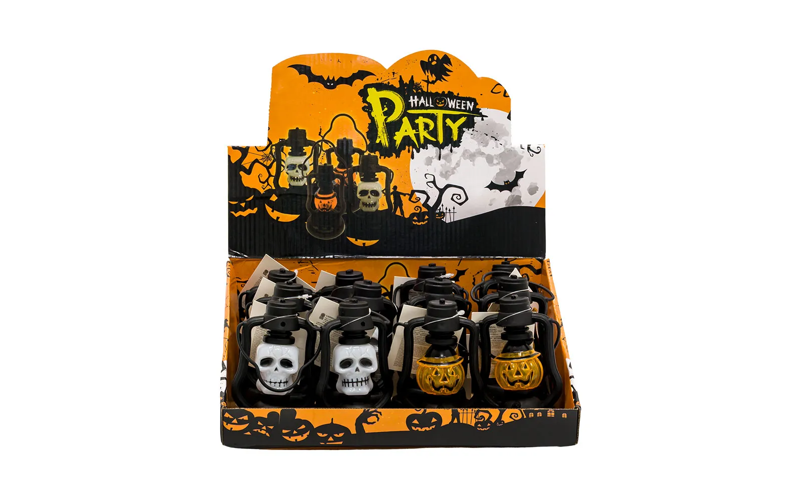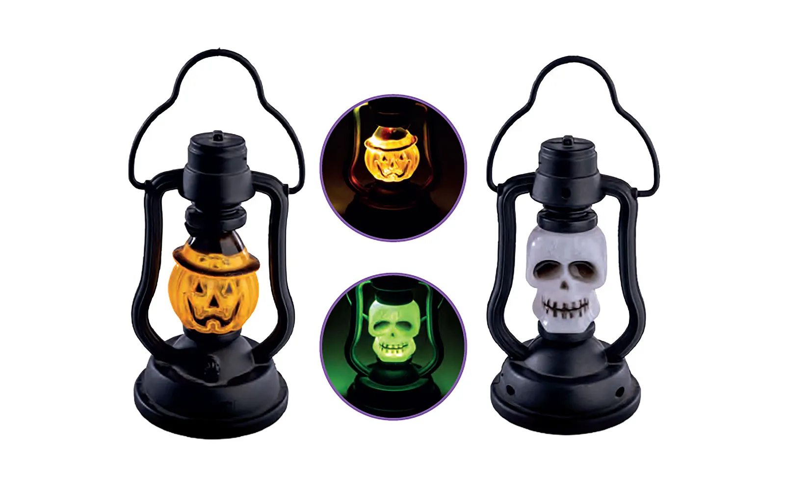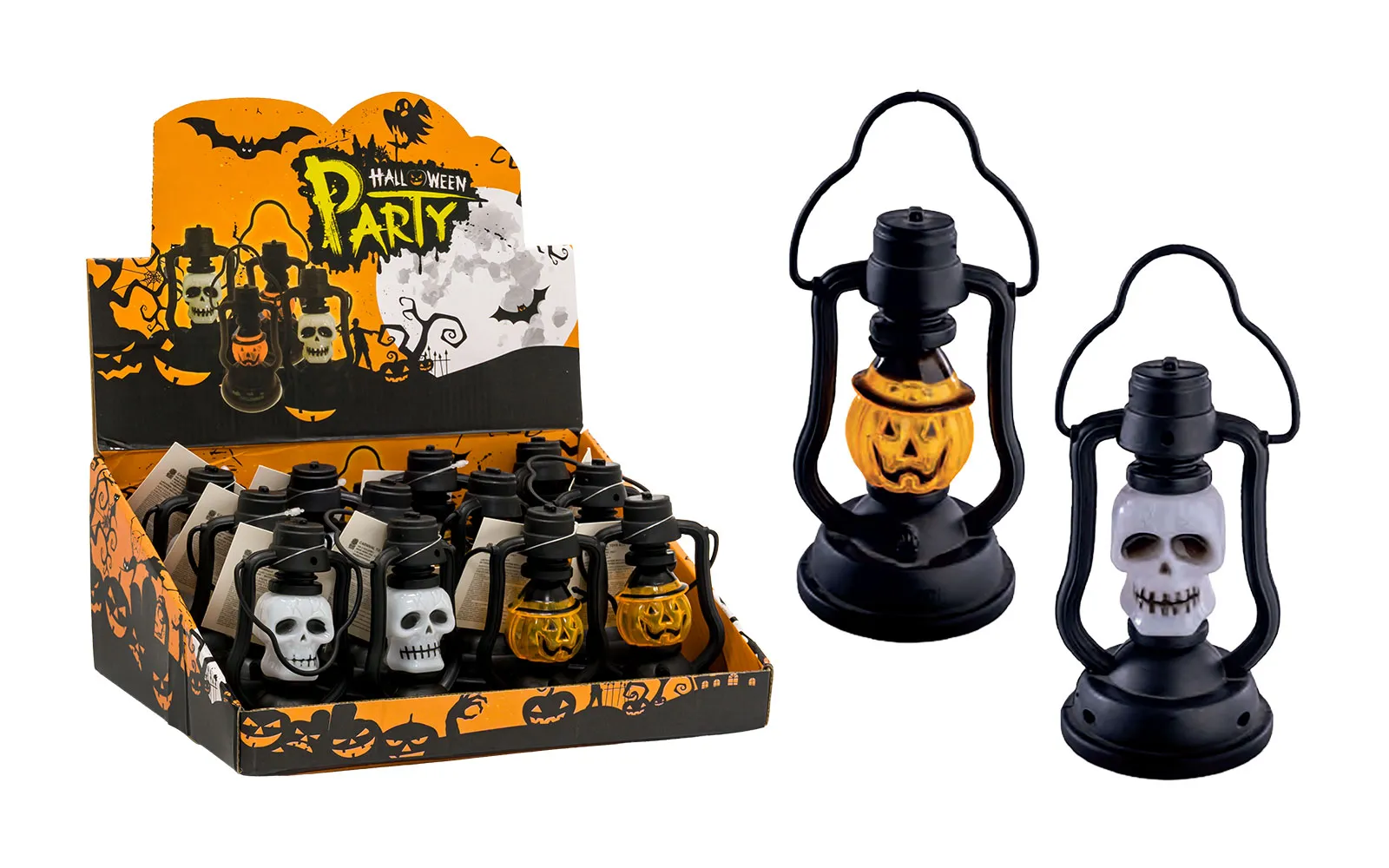 Halloween lantern. Available in the shape of a pumpkin or skeleton.