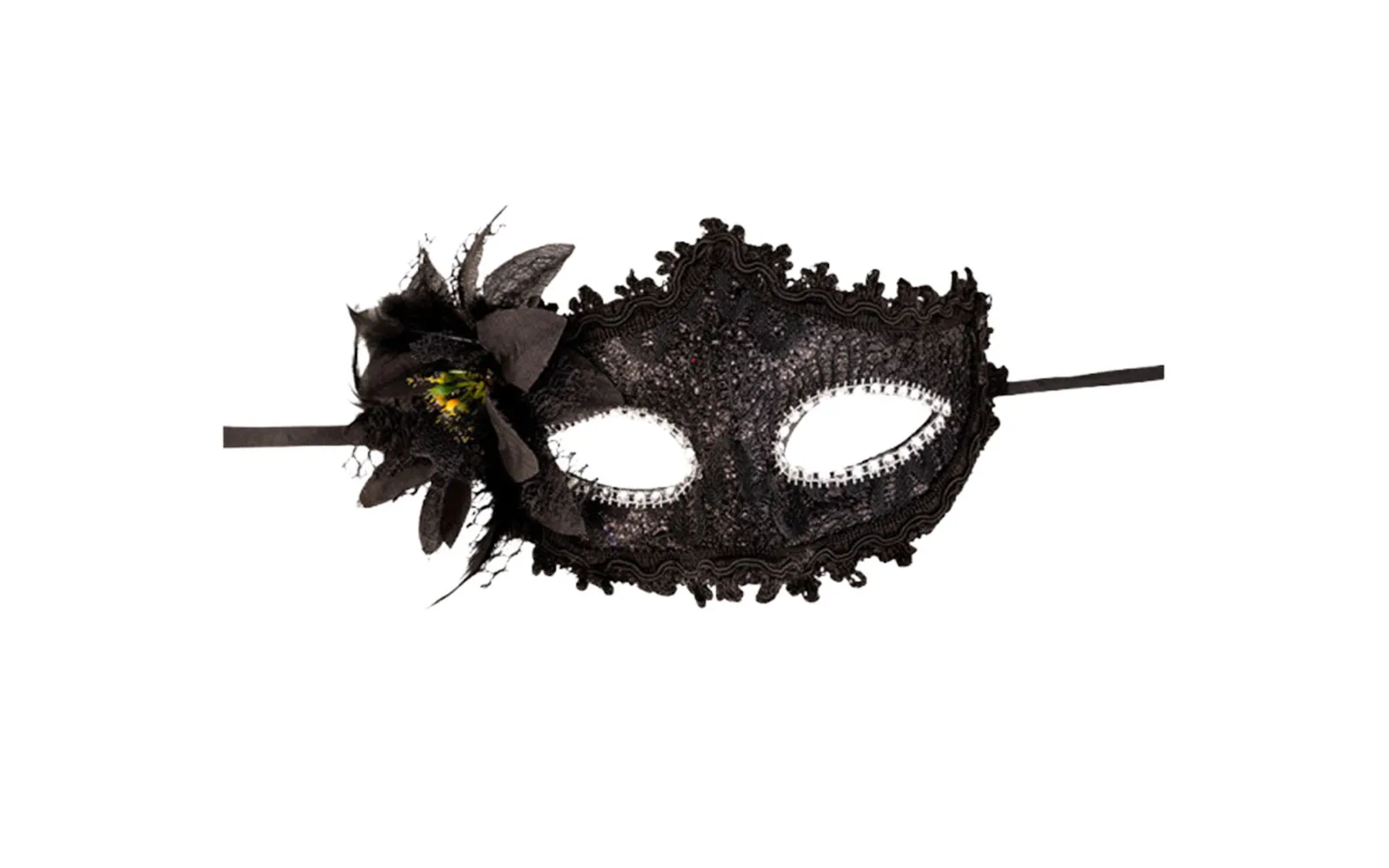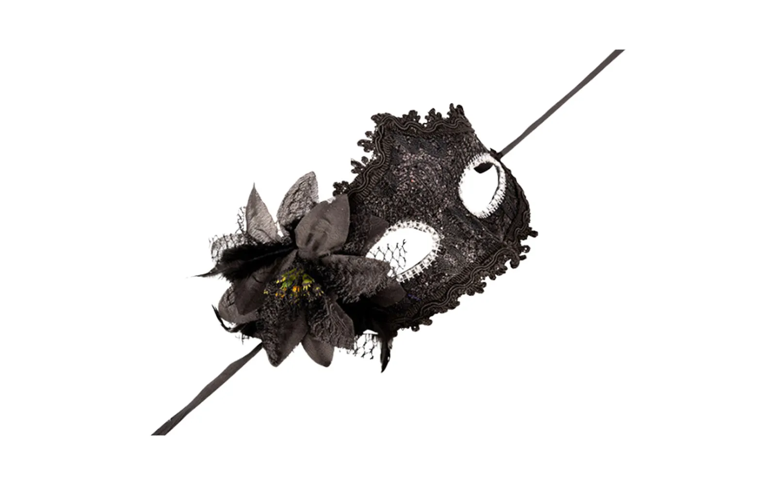 Black mask with a flower, Carnival toys. Put on a carnival mask and create a true carnival atmosphere.