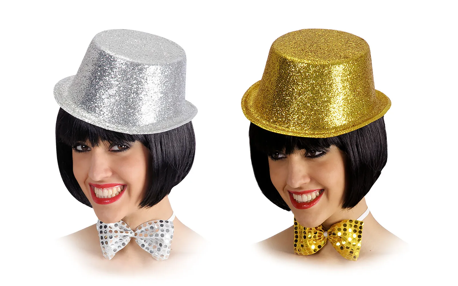 Glitter hat, Carnival Toys. The hat is the perfect choice for spicing up a carnival costume and standing out in the carnival crowd. Available in two colors - gold or silver.