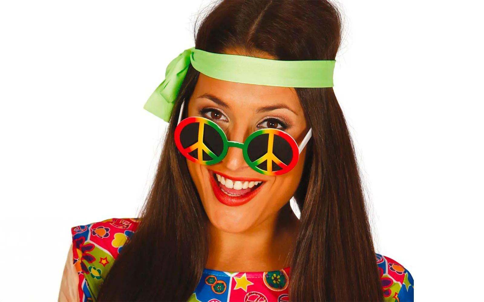 Carnival colored glasses in hippie style are a great fashion accessory for any retro outfit. With round colored lenses and a lightweight frame, they immediately evoke the spirit of the 60s and 70s. They are perfect for carnival parties, themed evenings, and costume events where you want to stand out with a carefree and colorful look.