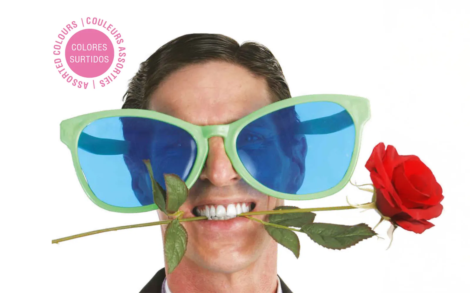 Carnival large glasses. Large colorful glasses are a fun and expressive fashion accessory, ideal for carnival antics, birthday parties or themed events. With their oversized frames and vibrant colors, they attract attention and ensure a lot of laughter. Available in various colors for even more fun - green, yellow, red, blue, pink or orange.