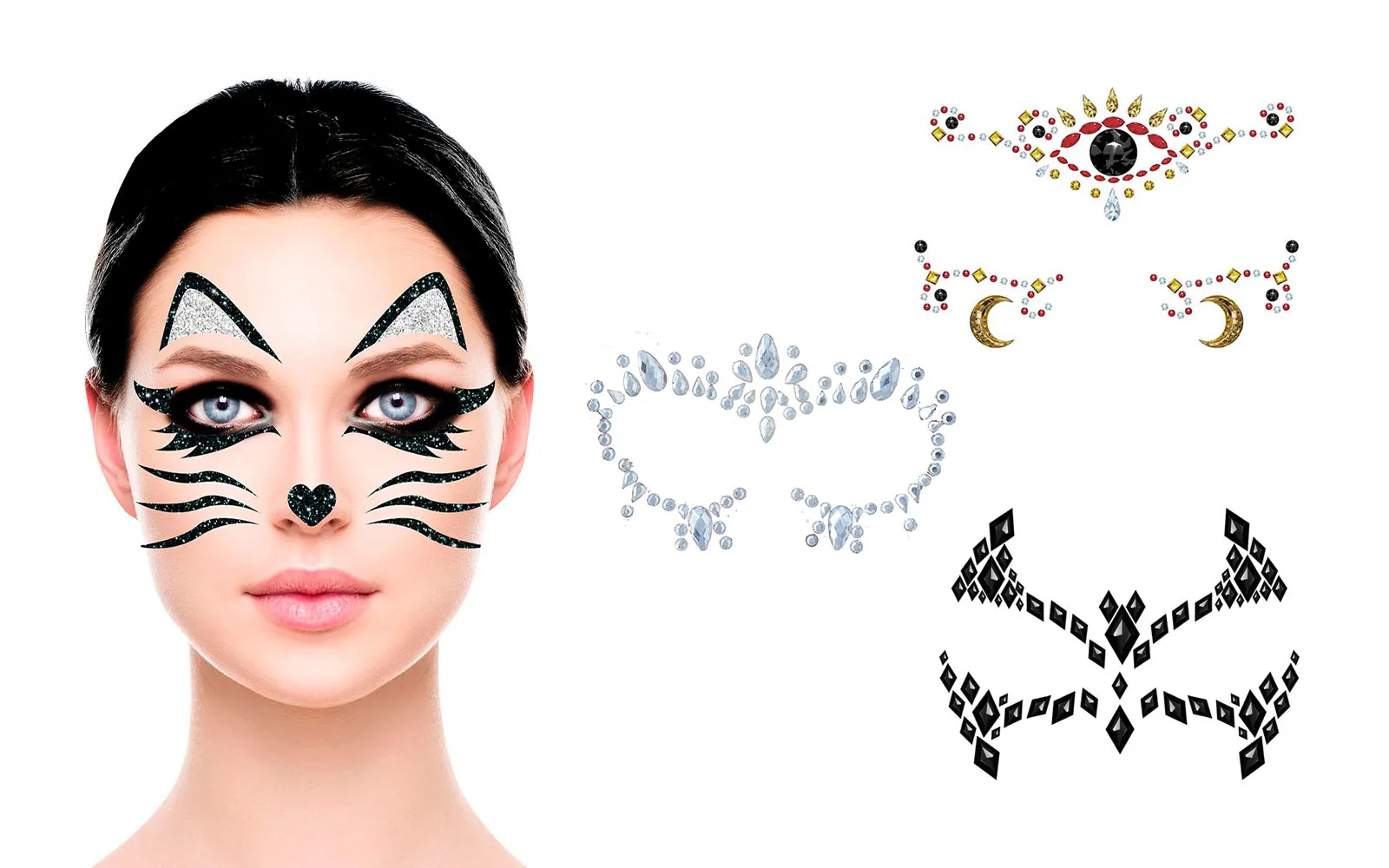 Carnival face decoration - stickers - jewelry. The perfect addition to carnival costumes! Self-adhesive decoration in the form of jewelry for a quick and effective face decoration. Easy to use without additional makeup - just stick on and shine! Ideal for parties, birthdays, or carnival adventures.