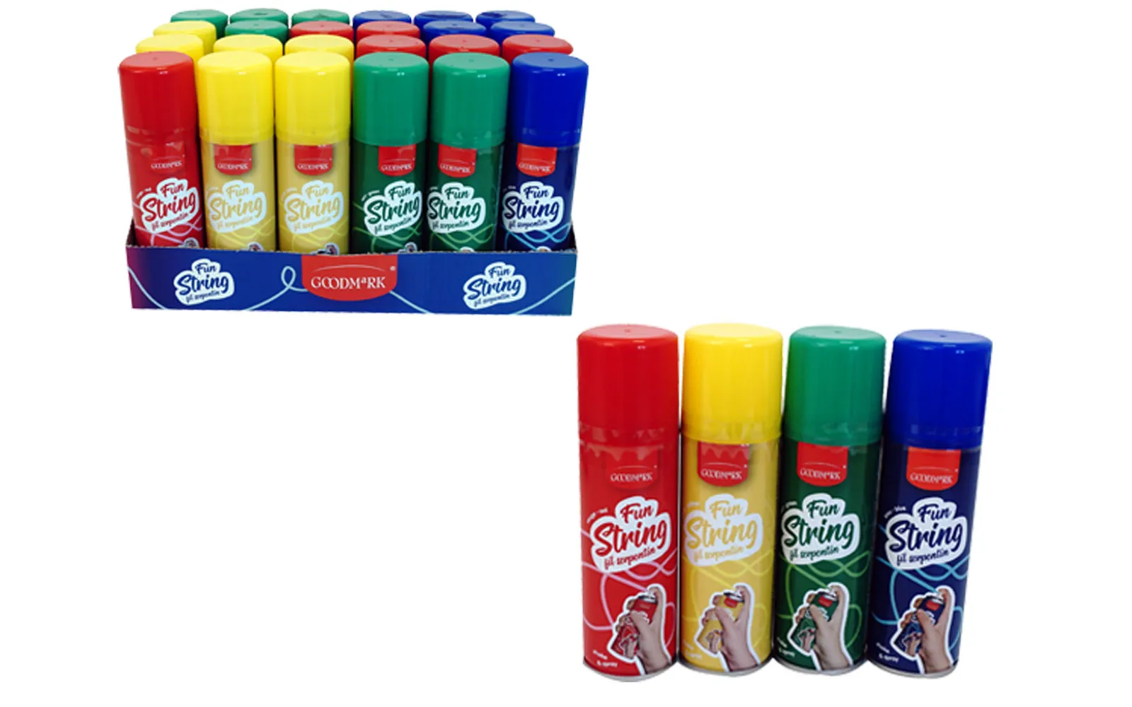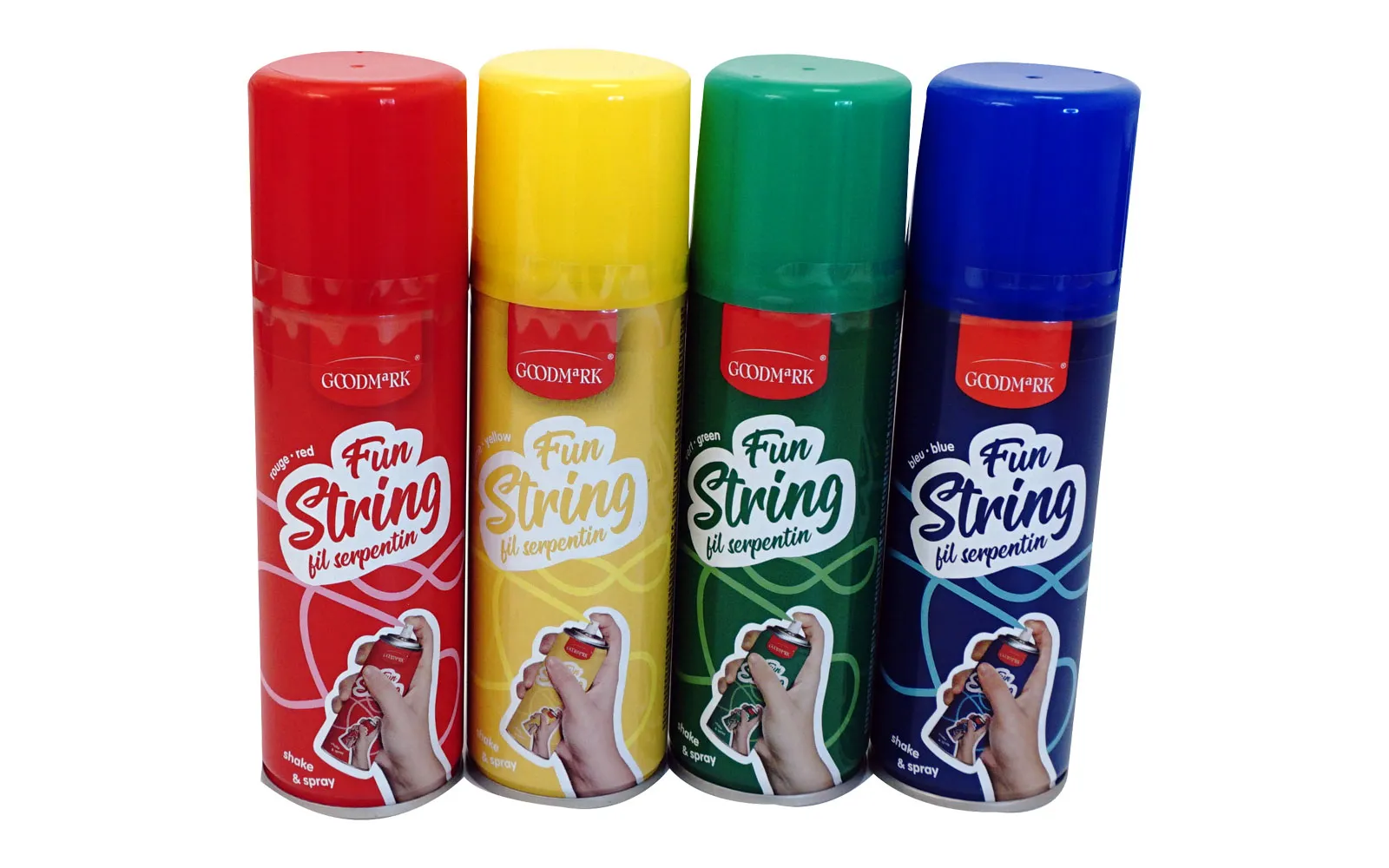 Shake the contents of the 70 ml spray well, then spray the contents into the air. What comes out? Fun colorful ribbons.