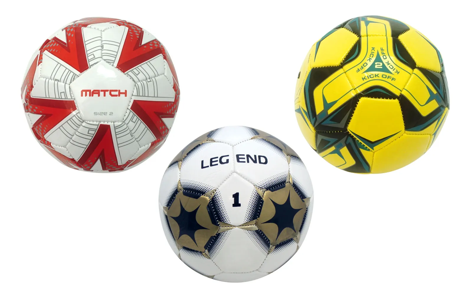 Soccer ball size 1 three different styles.