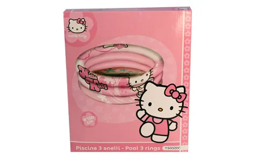 Motiv ljubke Hello Kitty na bazenu s tremi obroči premera fi 150 cm za osvežitev in zabavo v vročih poletnih dneh.