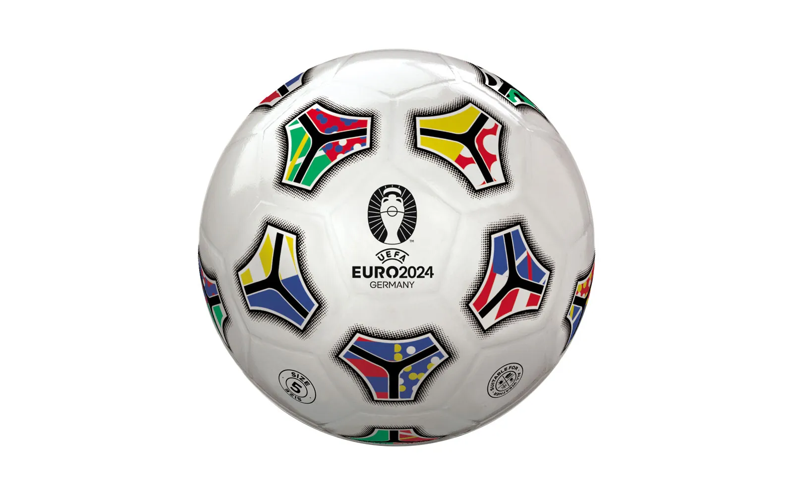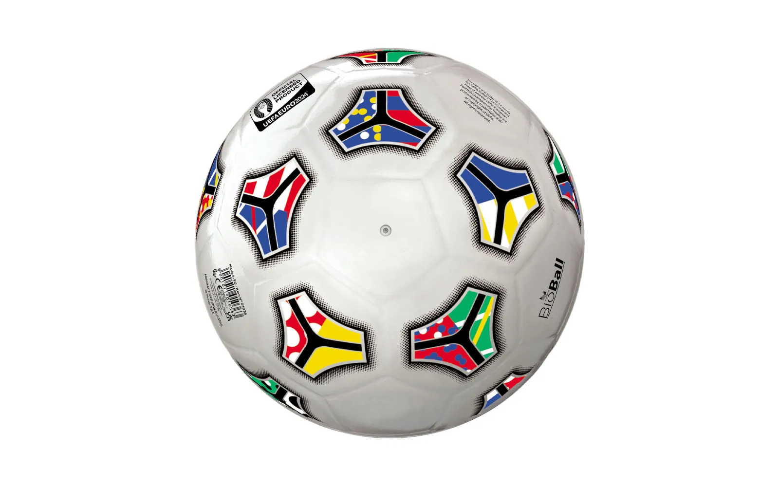 BIO EURO Classic 2024 football with a diameter of 230 mm. The ball is made according to an environmentally friendly formula that replaces 50% of fossil derivatives with renewable plant derivatives. The new material is significantly more environmentally friendly and allows for better recycling and re-manufacturing of toys.