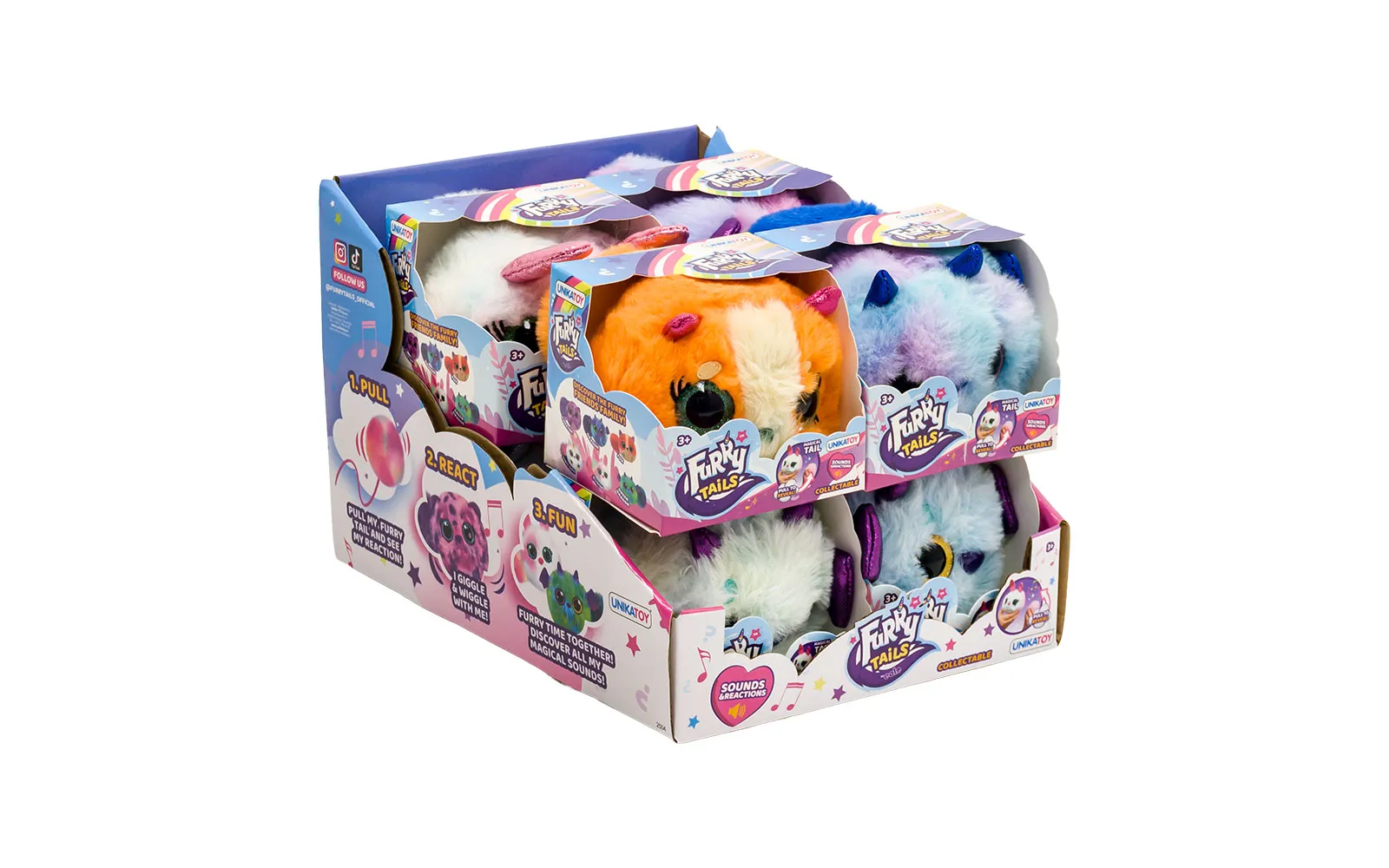 Furry Tails plush animals, with sound. This wonderful little animal will become your child's best friend because it will enchant them with its softness and colorful colors. The animal has more than 30 sounds and responses, sings and dances to the rhythm of music, and reacts to touch - but that's not all - it also wags its overly bushy and adorable tail!