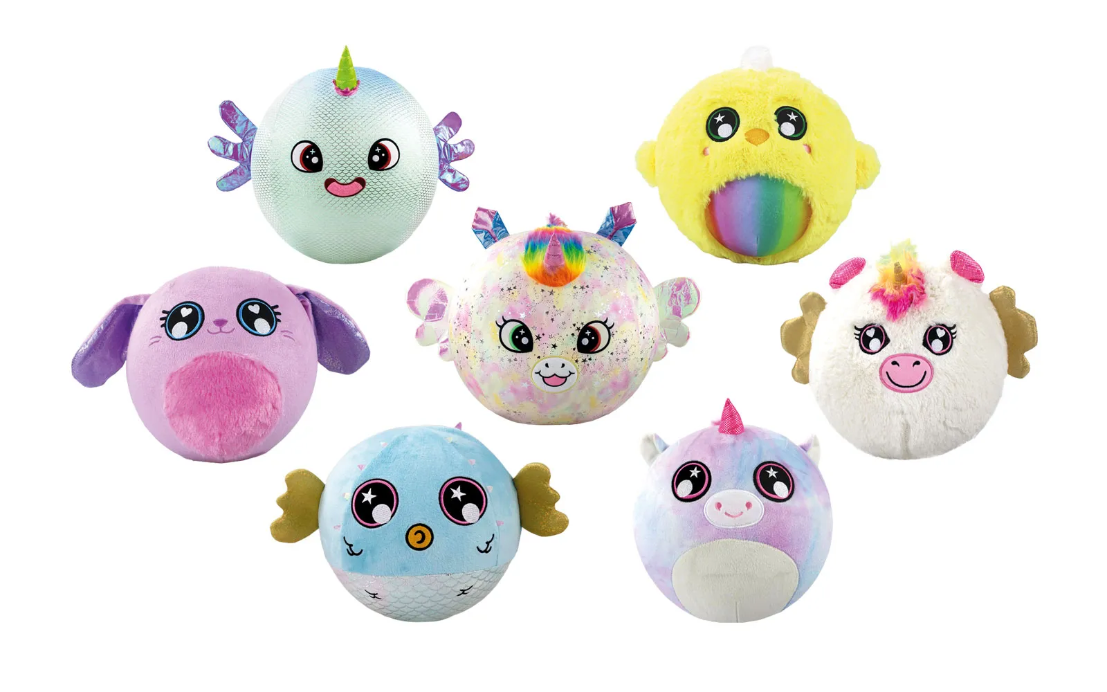 The fantasy plush balls bring softness and fun in a perfect combination! They are pleasantly soft to the touch, perfect for playing and hugging. Each ball has a wonderful motif that will delight children and lovers of cute characters. They are ideal for playing at home or outside! Available are adorable motifs of magical creatures and cute animals: pink unicorn, white unicorn, rainbow unicorn, chicken, bunny, puffer fish, and axolotl.