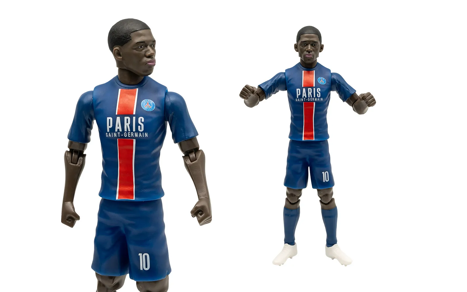 Football figure, Dembele, 20 cm. Discover the authentic figure of the popular football player Dembele. The figure is of high-quality craftsmanship, has movable limbs, wears the club number, and comes with a football.