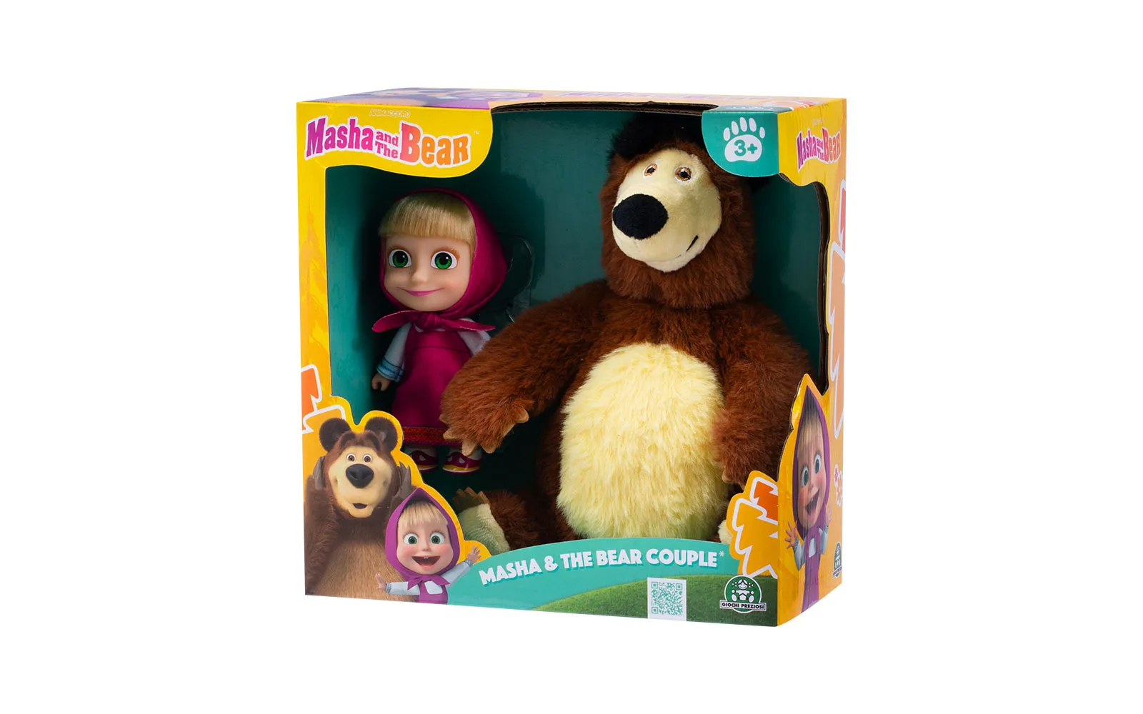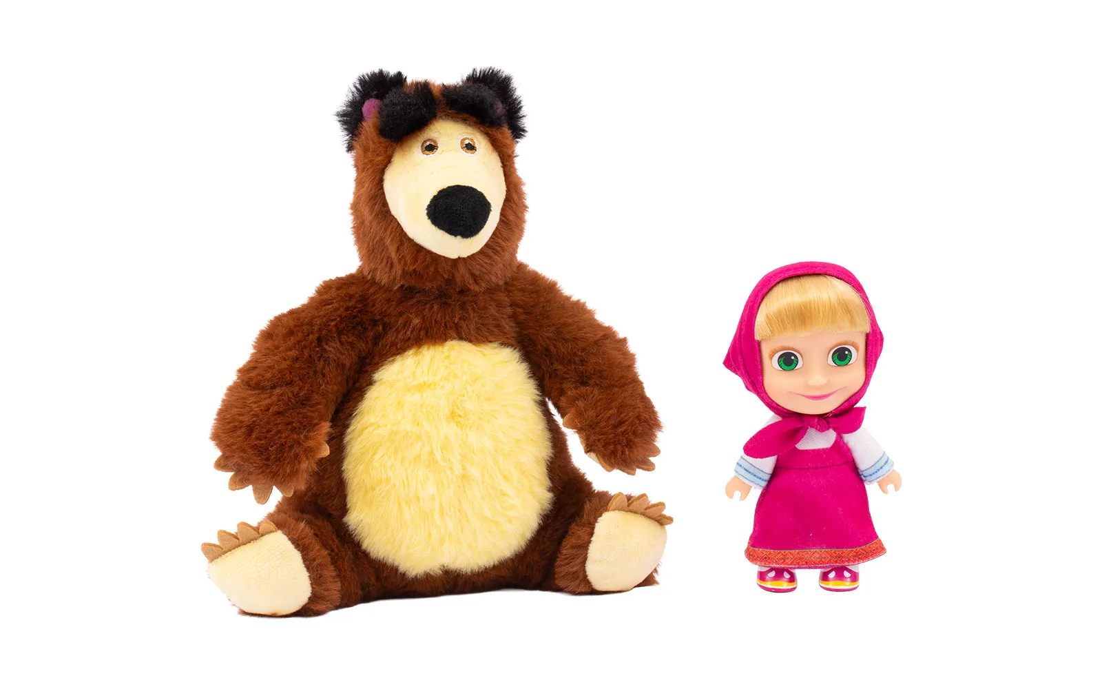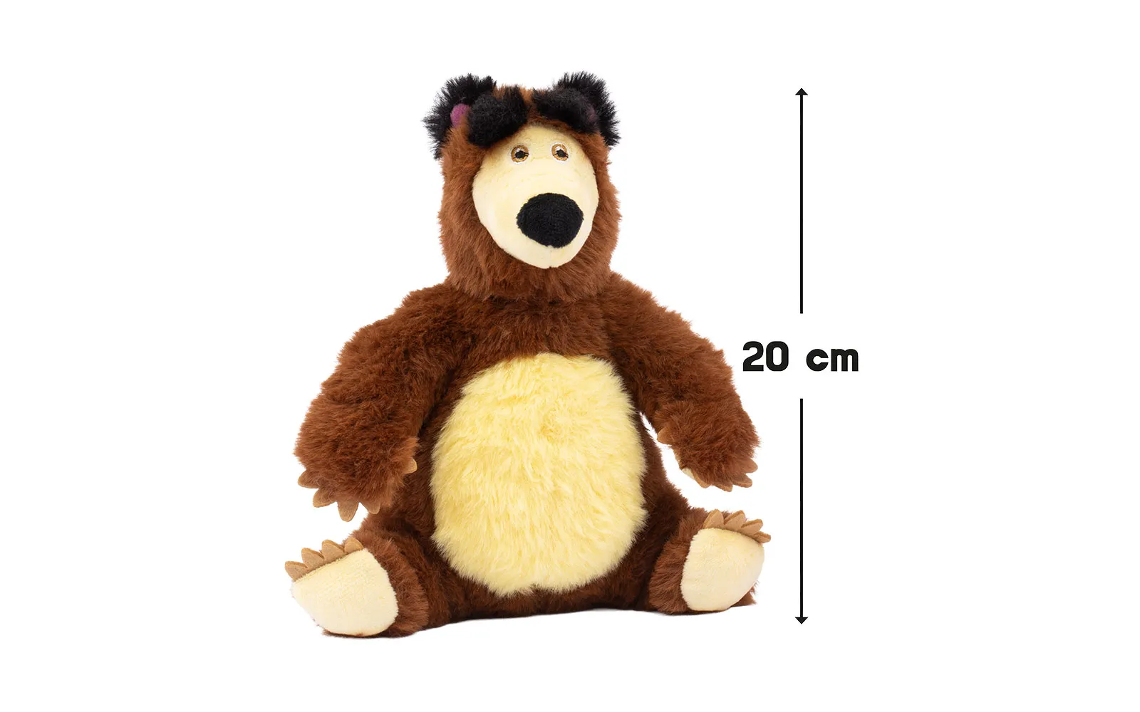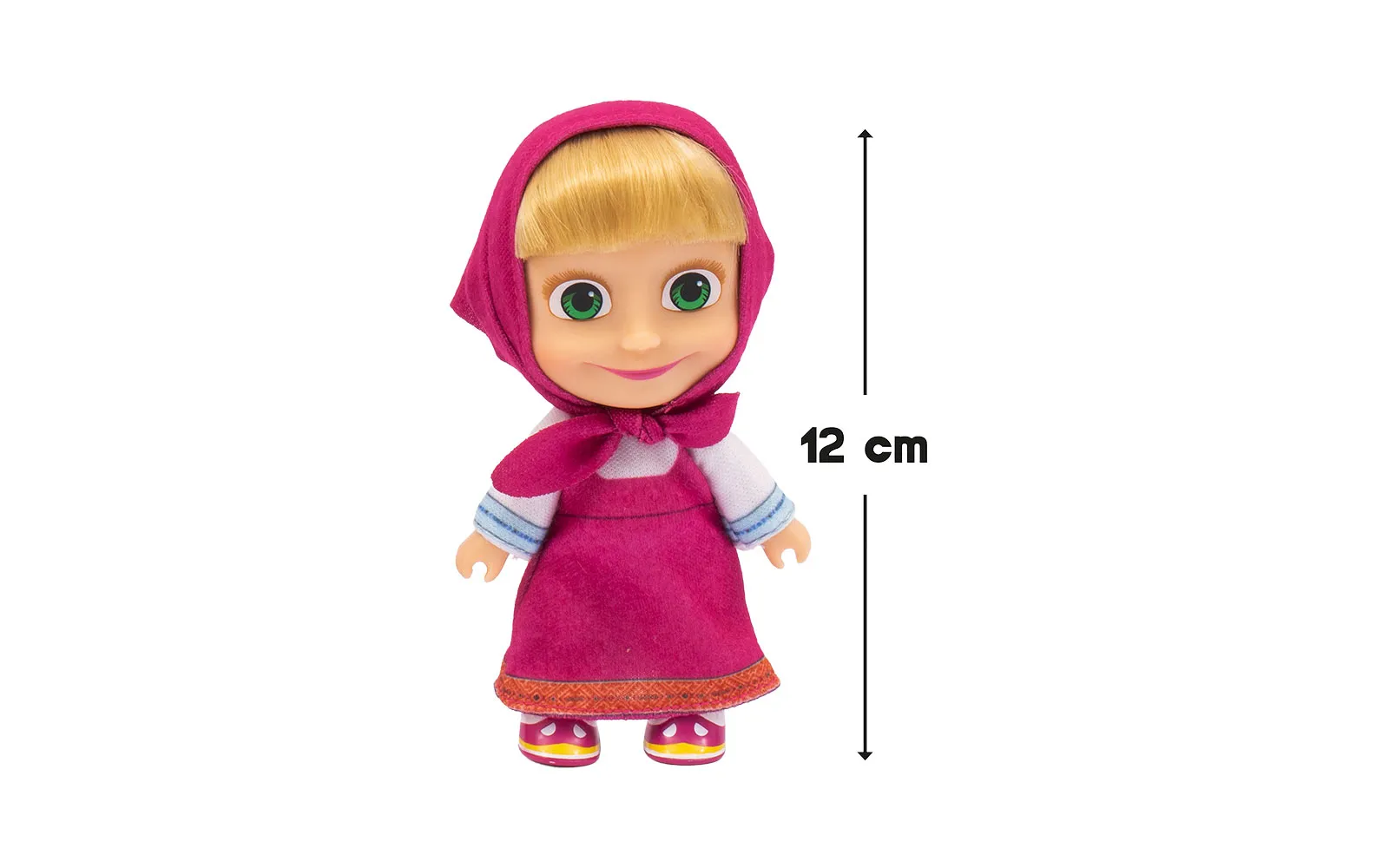 Masha's figure with a plush bear figure. The Masha figure is 12 cm in size, and the plush bear figure is 20 cm.