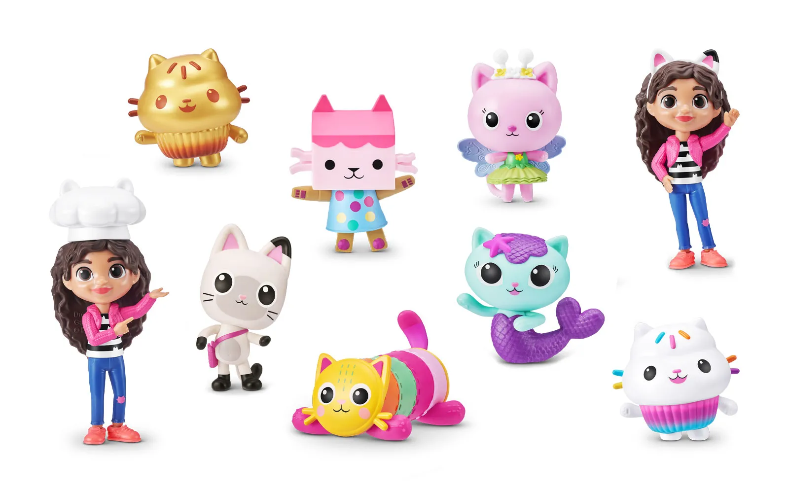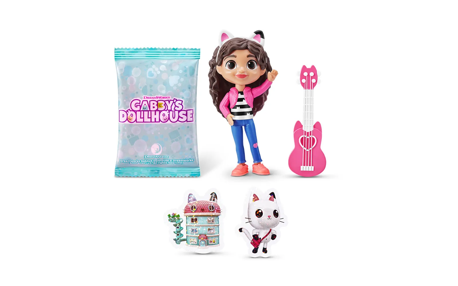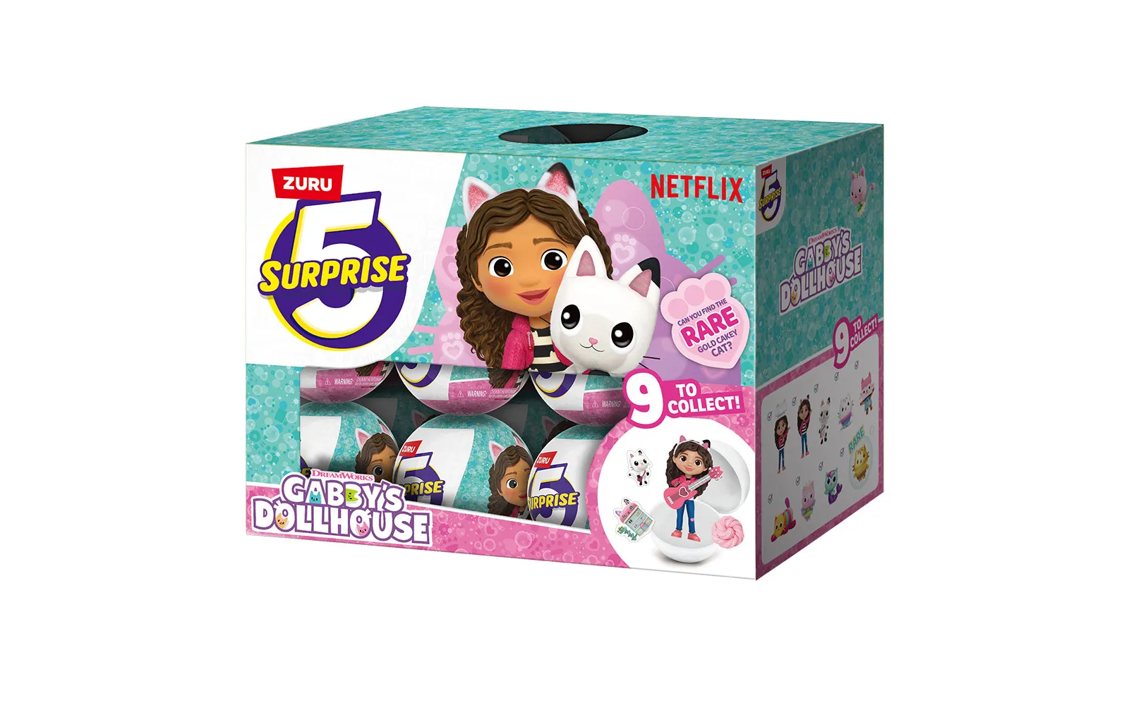 5 Surprise Gabby's dollhouse, Zuru. The set includes 1 Gabby figurine and 4 different accessories. Recreate the world of Gabby's Dollhouse in miniature and immerse yourself in imaginative play adventures. Can you find the exceptionally rare gold cat Cakey? The package content includes 1x capsule, 1x Gabby's Dollhouse figurine, 1x figurine accessories, 1x slime and 2x stickers. This product is available in different variants, which one you receive is a surprise.