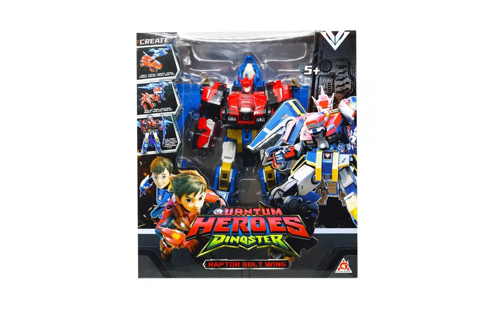 Discover the amazing world of dinosaurs with the Dinoster team! Through their adventures, four friends overcome big challenges to protect dinosaurs. Welcome to team Dinoster! Explore the dinosaur world and embark on an adventure with the great raptor Bolt Wing, Dinoster. Study and save dinosaurs with the great raptor Bolt Wing! He's brave and easily connects with dinosaurs. A transformation robot can become a dino truck, dino robot, or 2-in-1, depending on your choice. You can easily transform it into a car or a dinosaur. The robot also has many flexible parts and is compatible with other sets. The robot's height is 38.5 cm.
