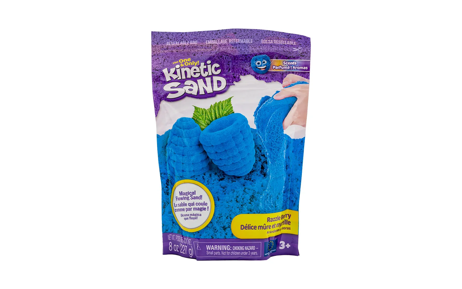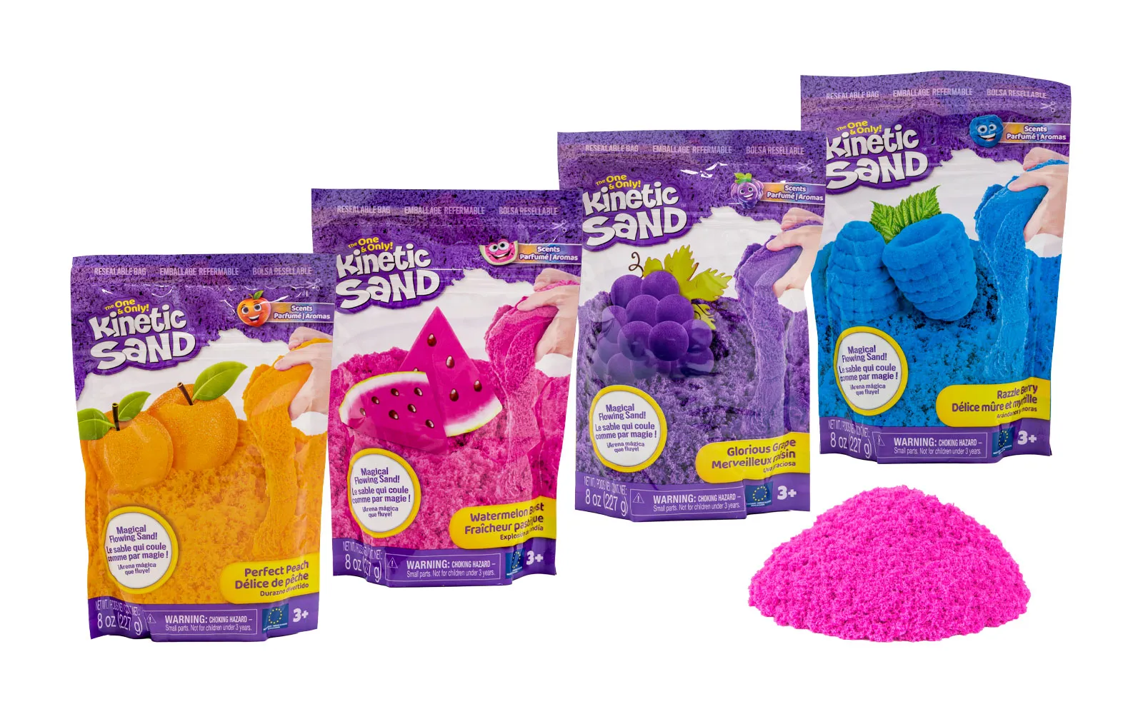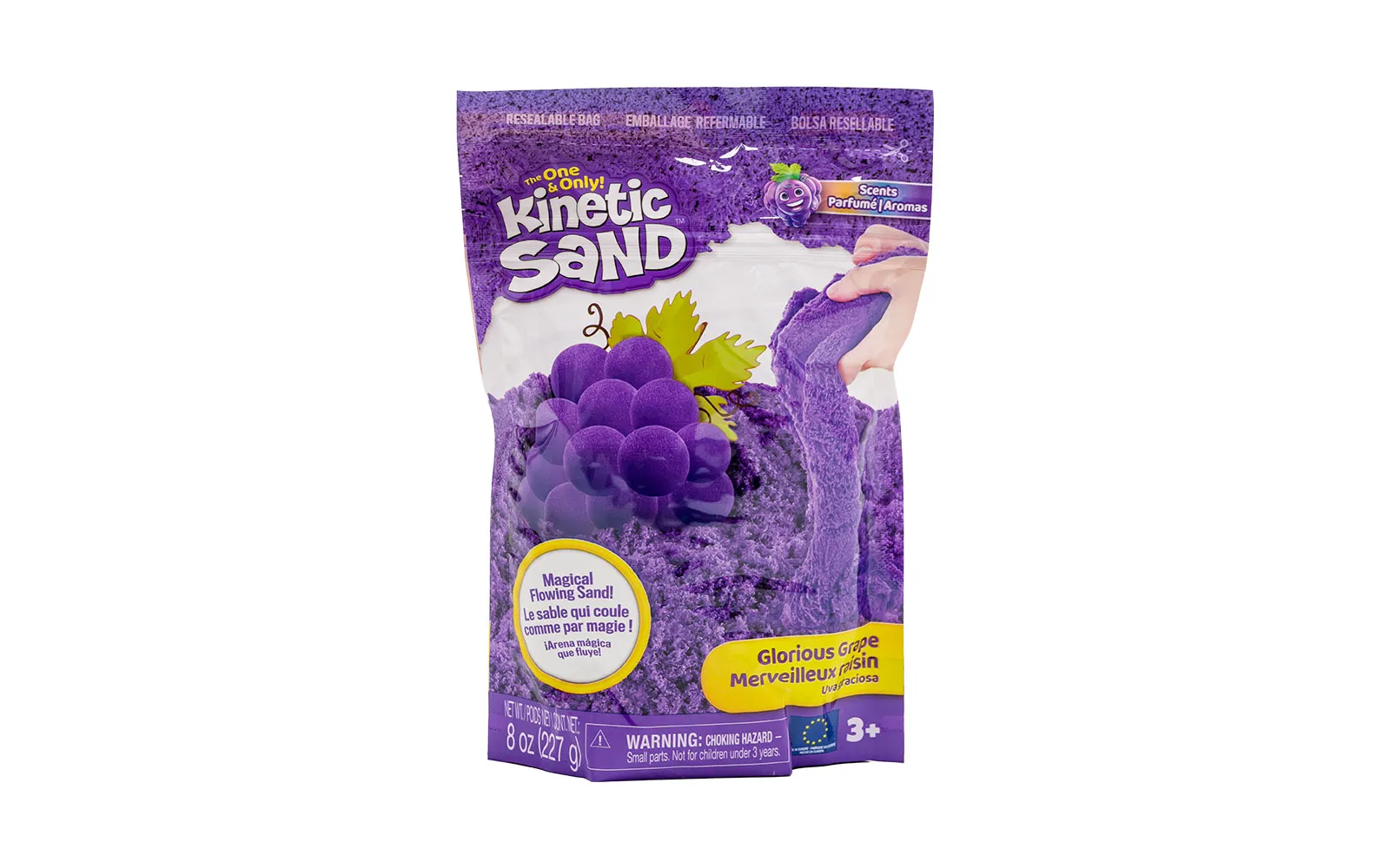 Scented kinetic sand, Kinetic Sand, Spin Master. Available in orange, purple, blue or pink color. The set includes 227 g of kinetic sand. The sand of kinetic sand is produced in Sweden.