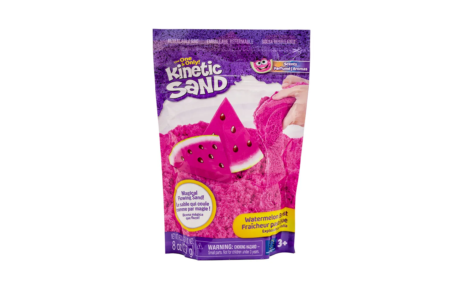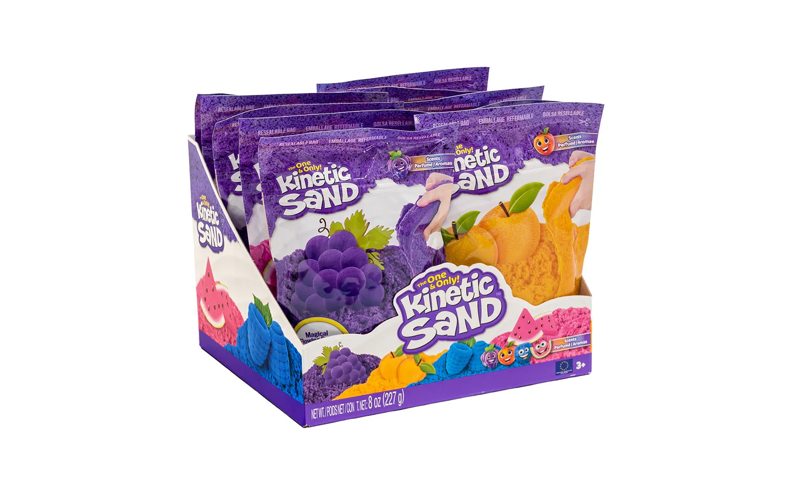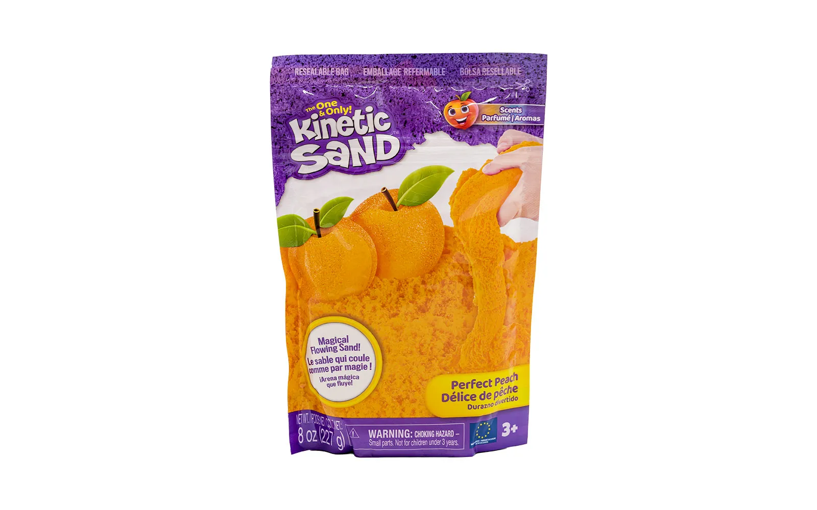 Scented kinetic sand, Kinetic Sand, Spin Master. Available in orange, purple, blue or pink color. The set includes 227 g of kinetic sand. The sand of kinetic sand is produced in Sweden.
