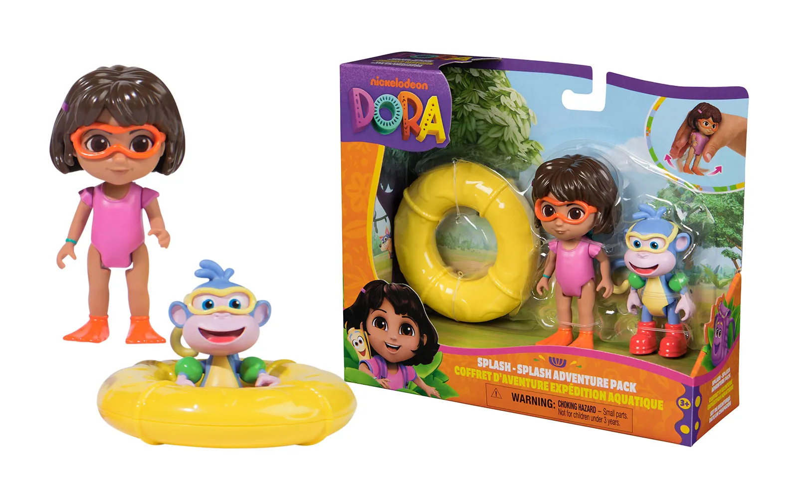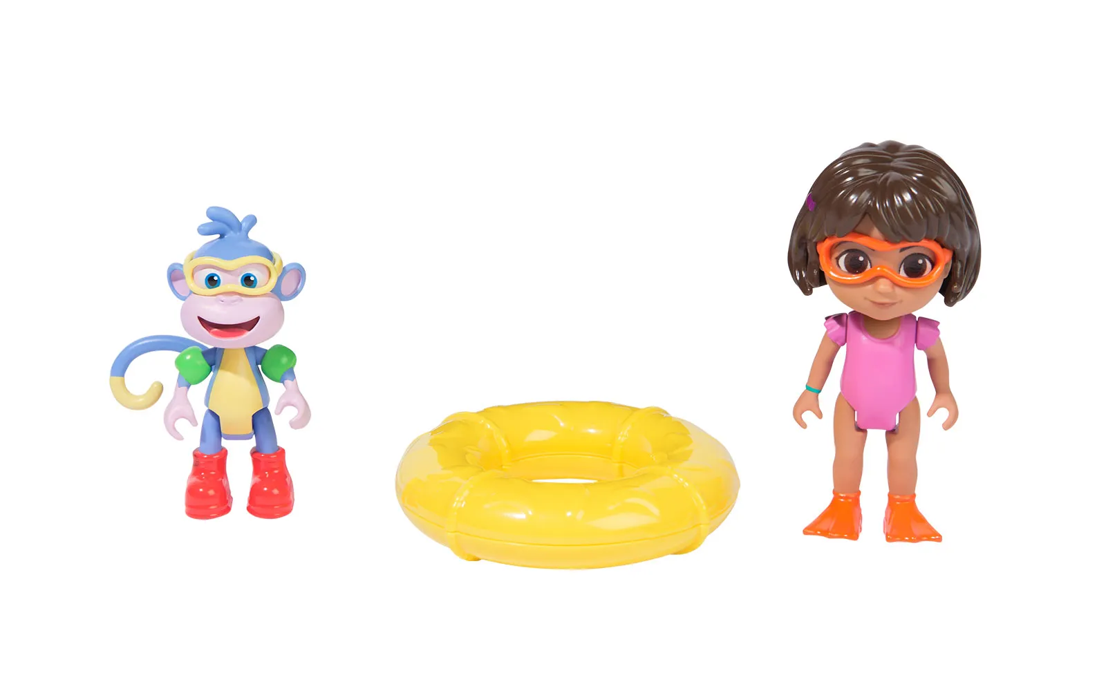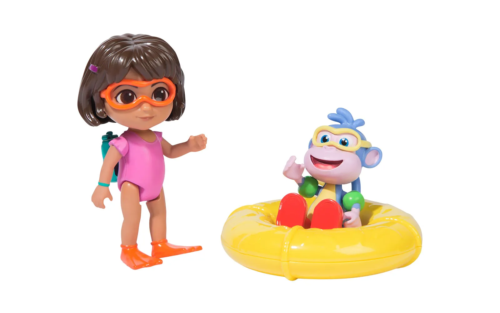 Dora Splash, adventure set. The set includes a Dora figurine, a swimming ring, a floating monkey, and is perfect for children's fun game.