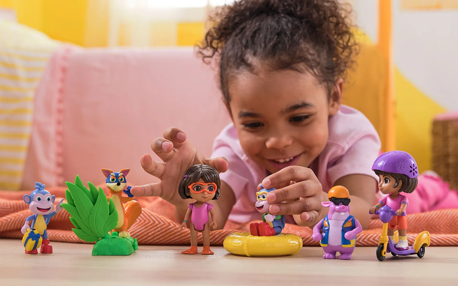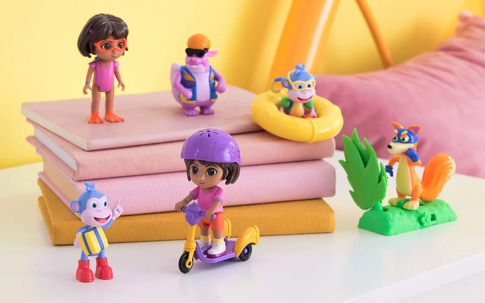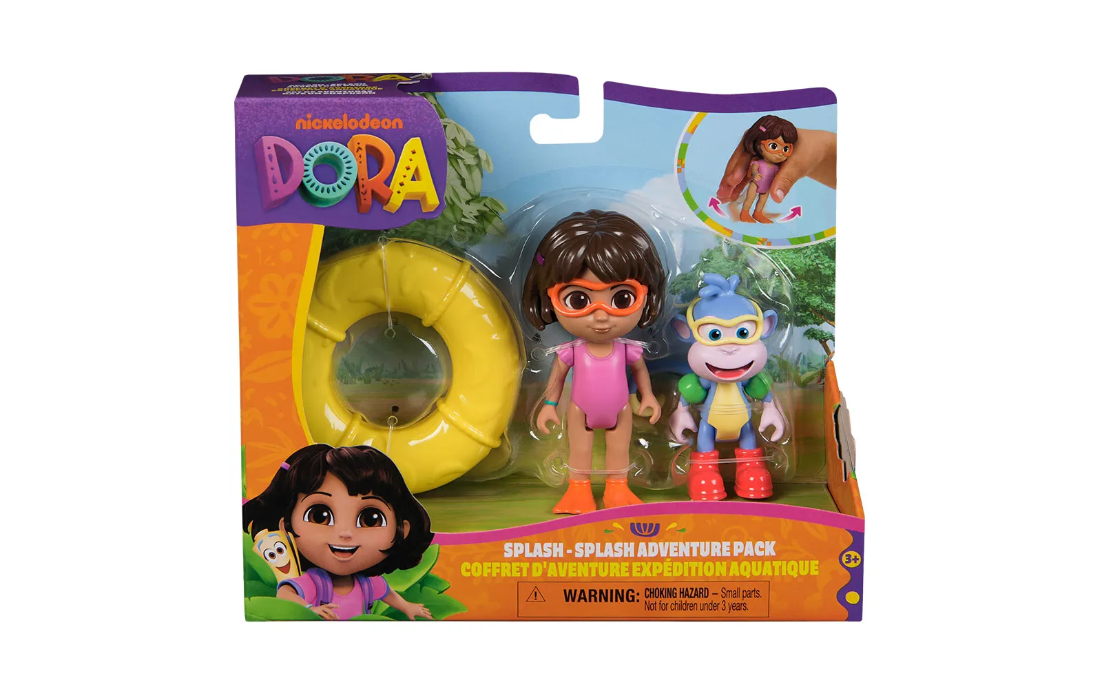 Dora Splash, adventure set. The set includes a Dora figurine, a swimming ring, a floating monkey, and is perfect for children's fun game.