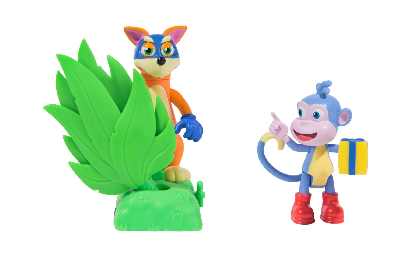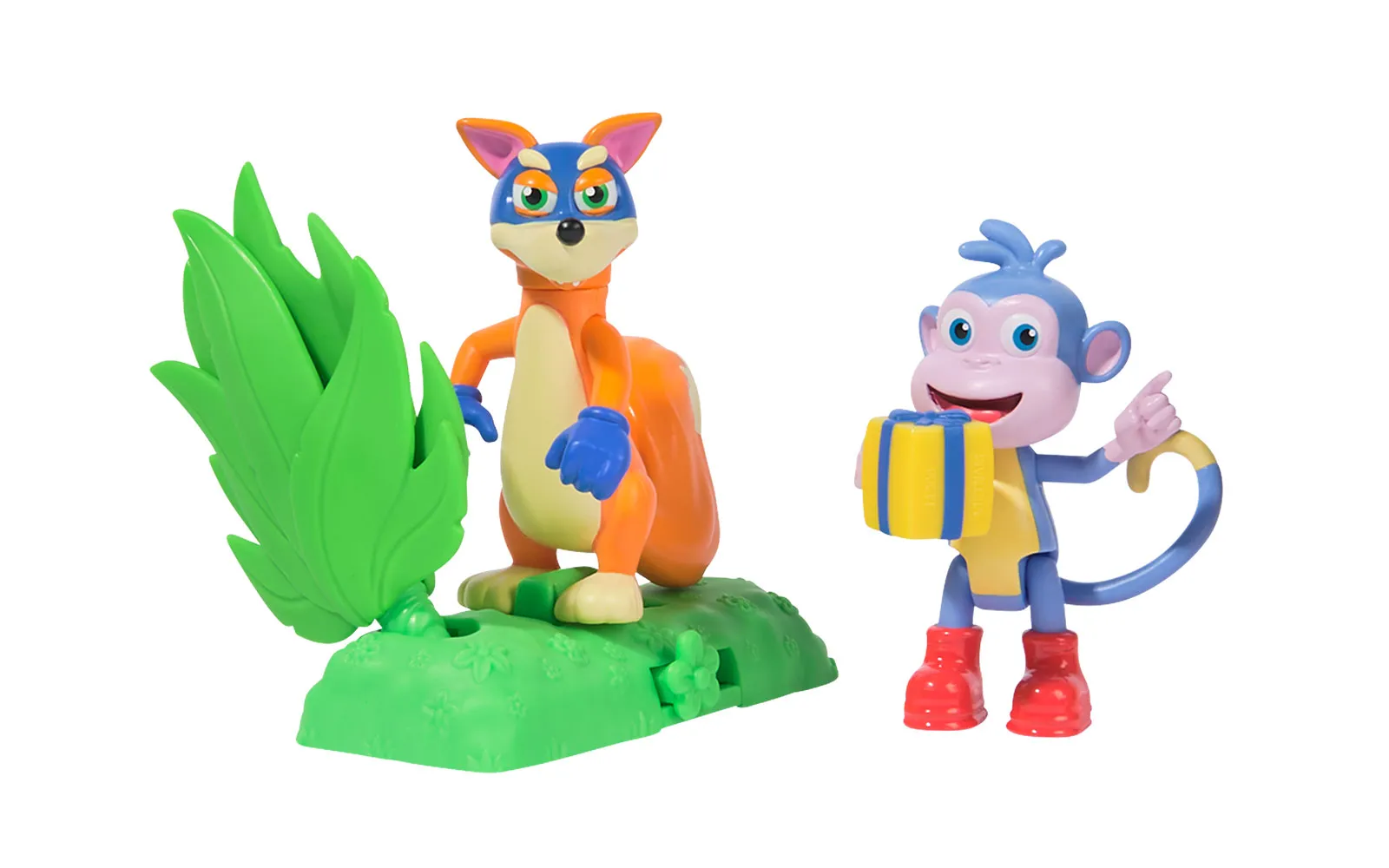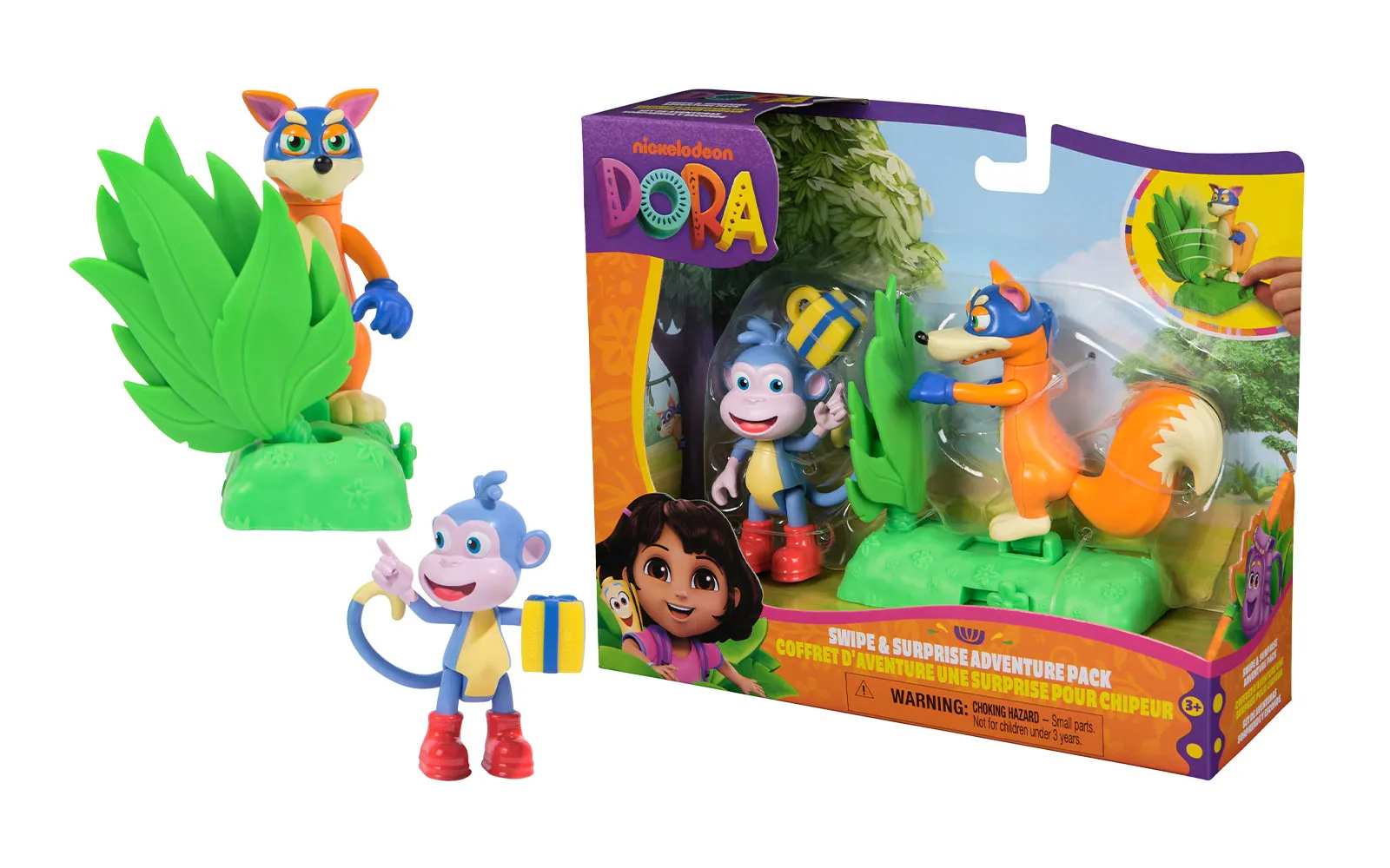 Adventure set Swipe and surprise, set, Dora. The set includes two figurines from the animated series Dora - the monkey and the fox, along with various accessories.