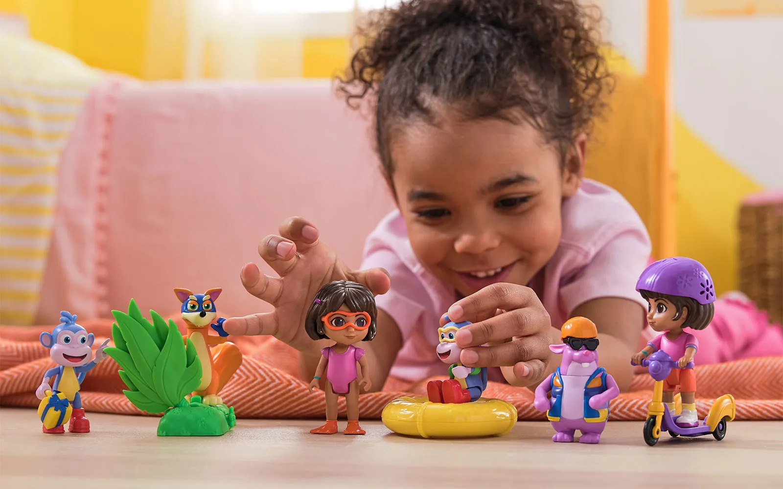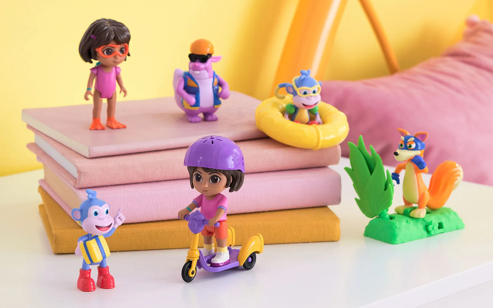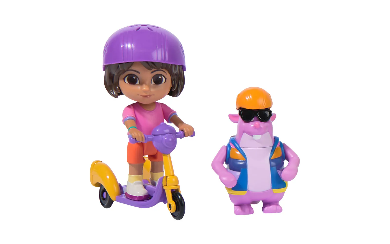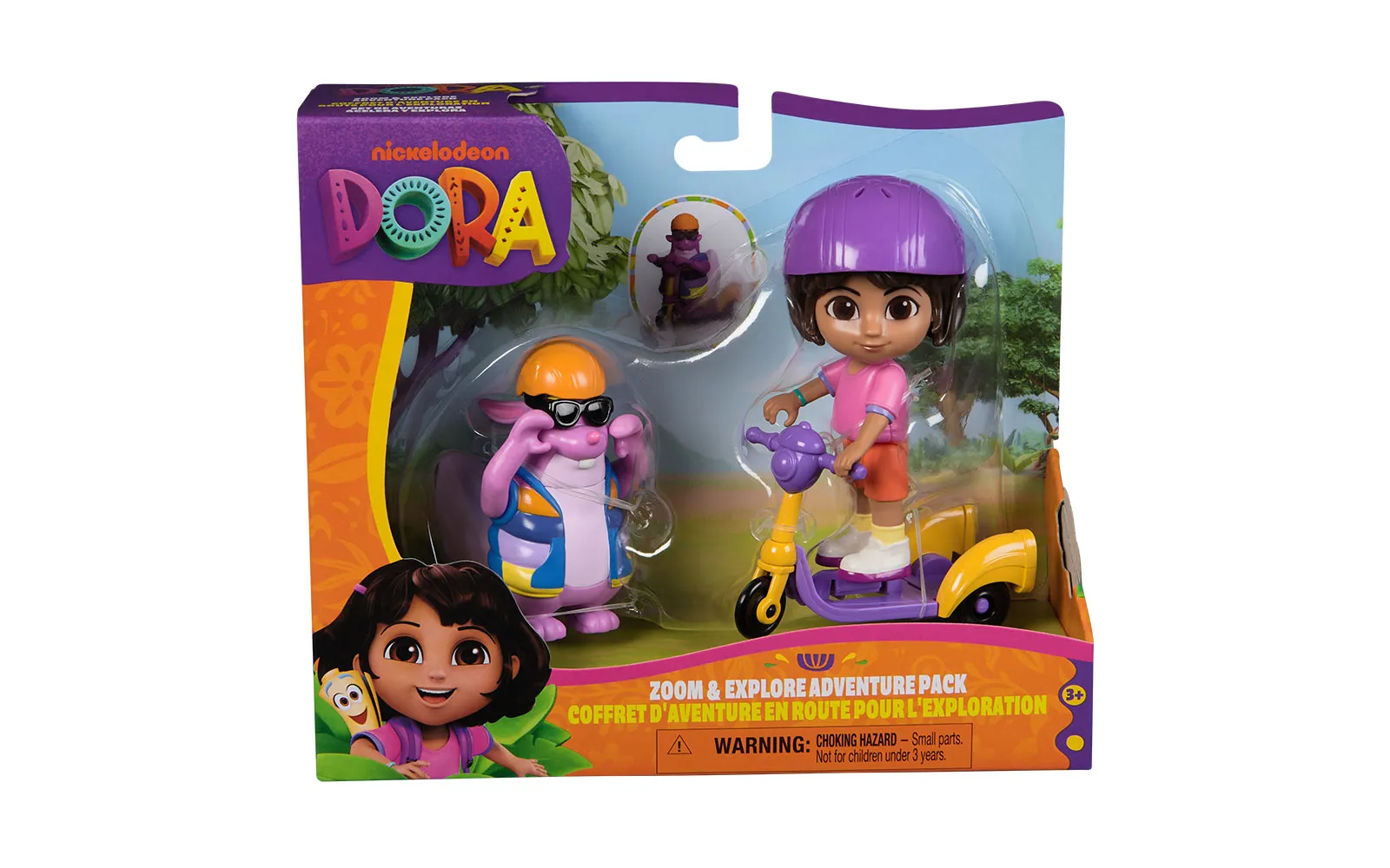 Adventure set Zoom&Explore, set, Dora. The set includes two figures from the animated series Dora and a scooter.