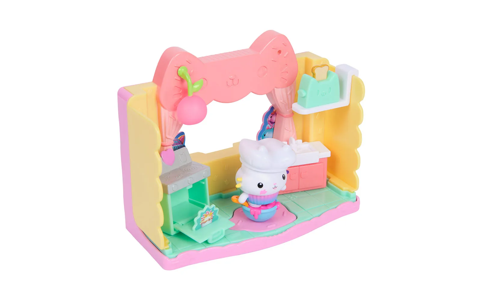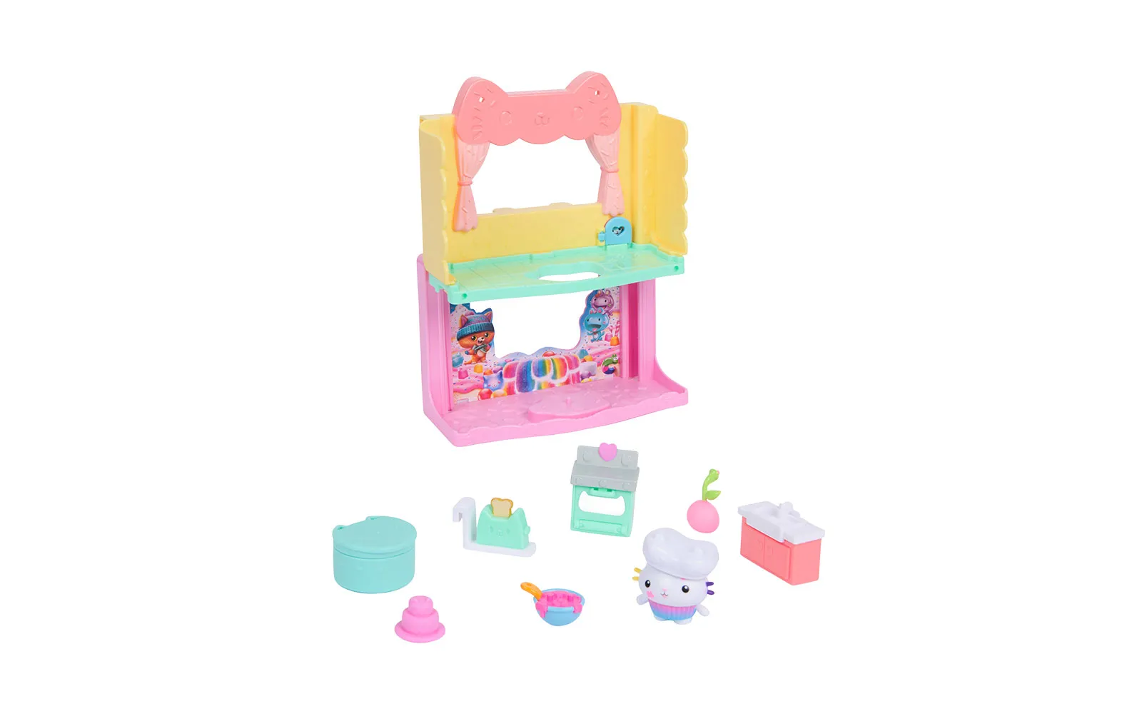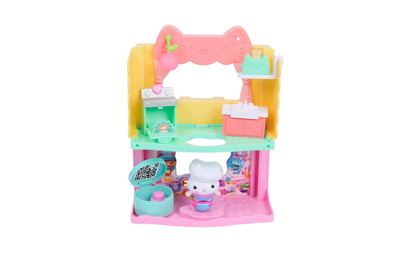 Kitchen playset, Gabby's dollhouse. This kitchen is truly magical, as it's two-story! The kitchen with various accessories allows for fun play with the characters of Gabby's dollhouse, and at the same time, with a jump on the pot, it allows a dive into the lower floor. Prepare real culinary specialties with the characters of GDH!