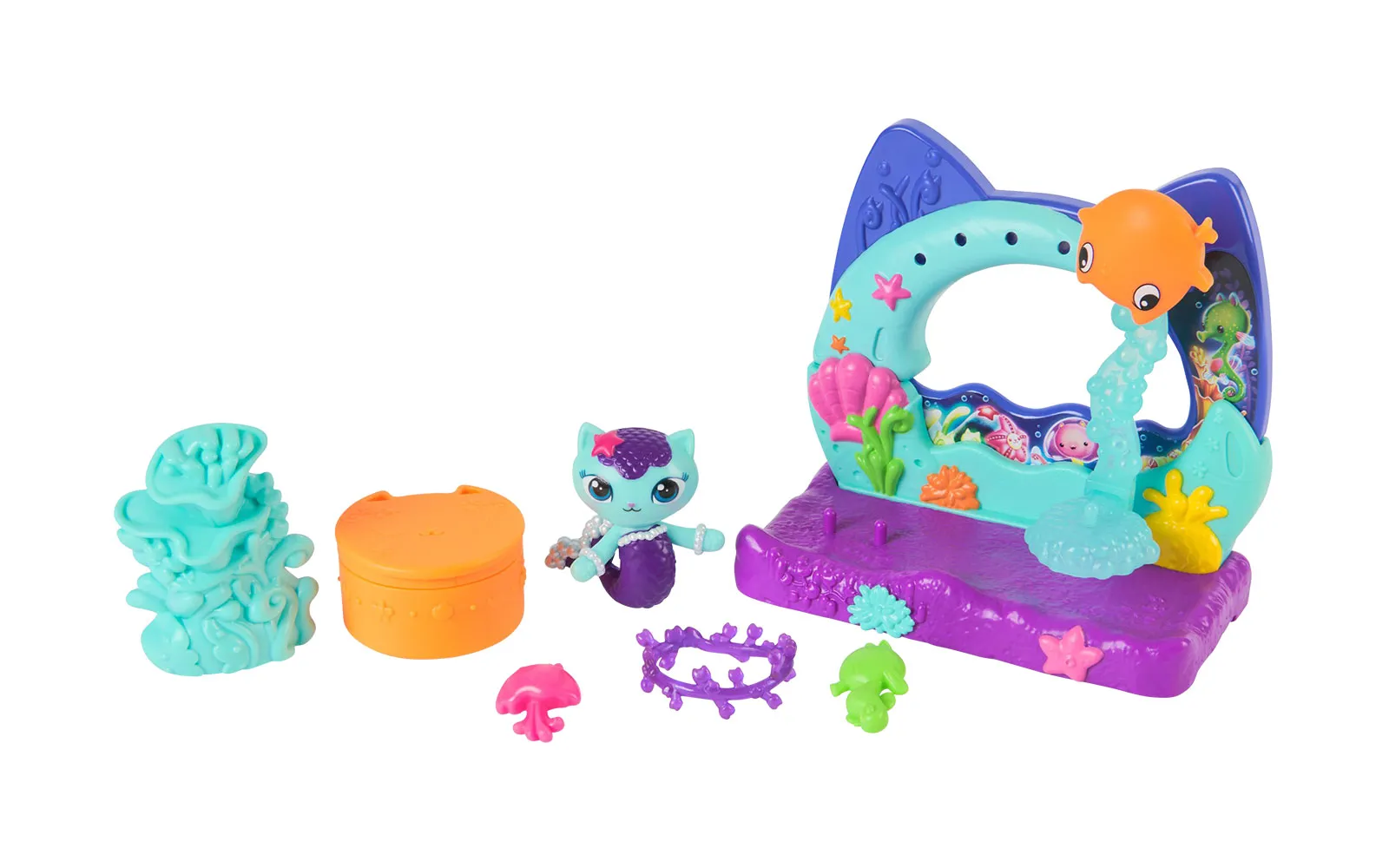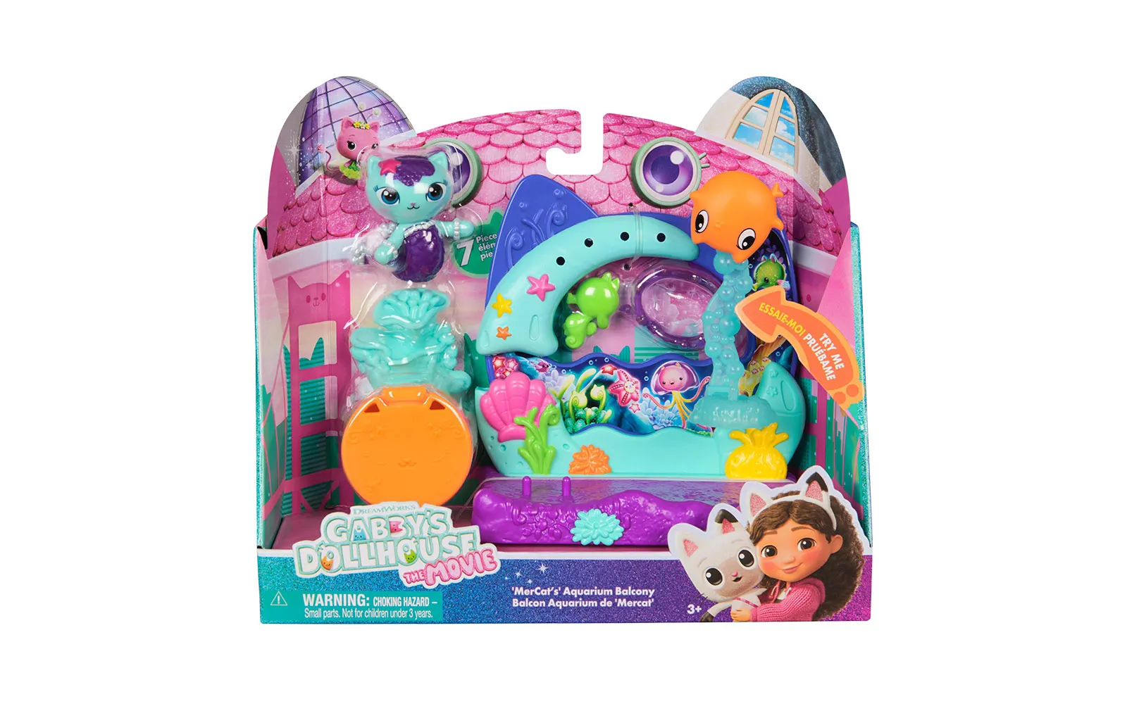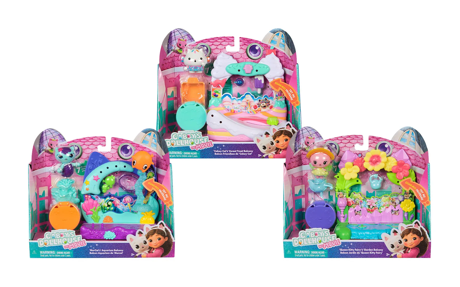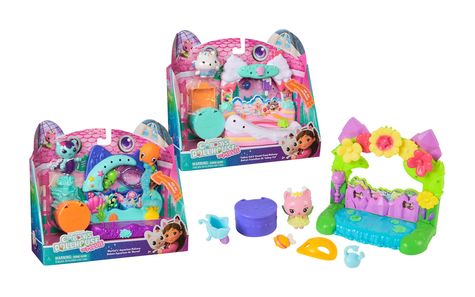 Balcony movie, Gabby's dollhouse. With the balcony set, you get to know new characters from the movie Gabby's dollhouse, while the balconies have different moving elements. You can choose between Aquarium World, Crystal Garden World or Confectionary World. With the balconies, you can update your own Gabby's dollhouse.