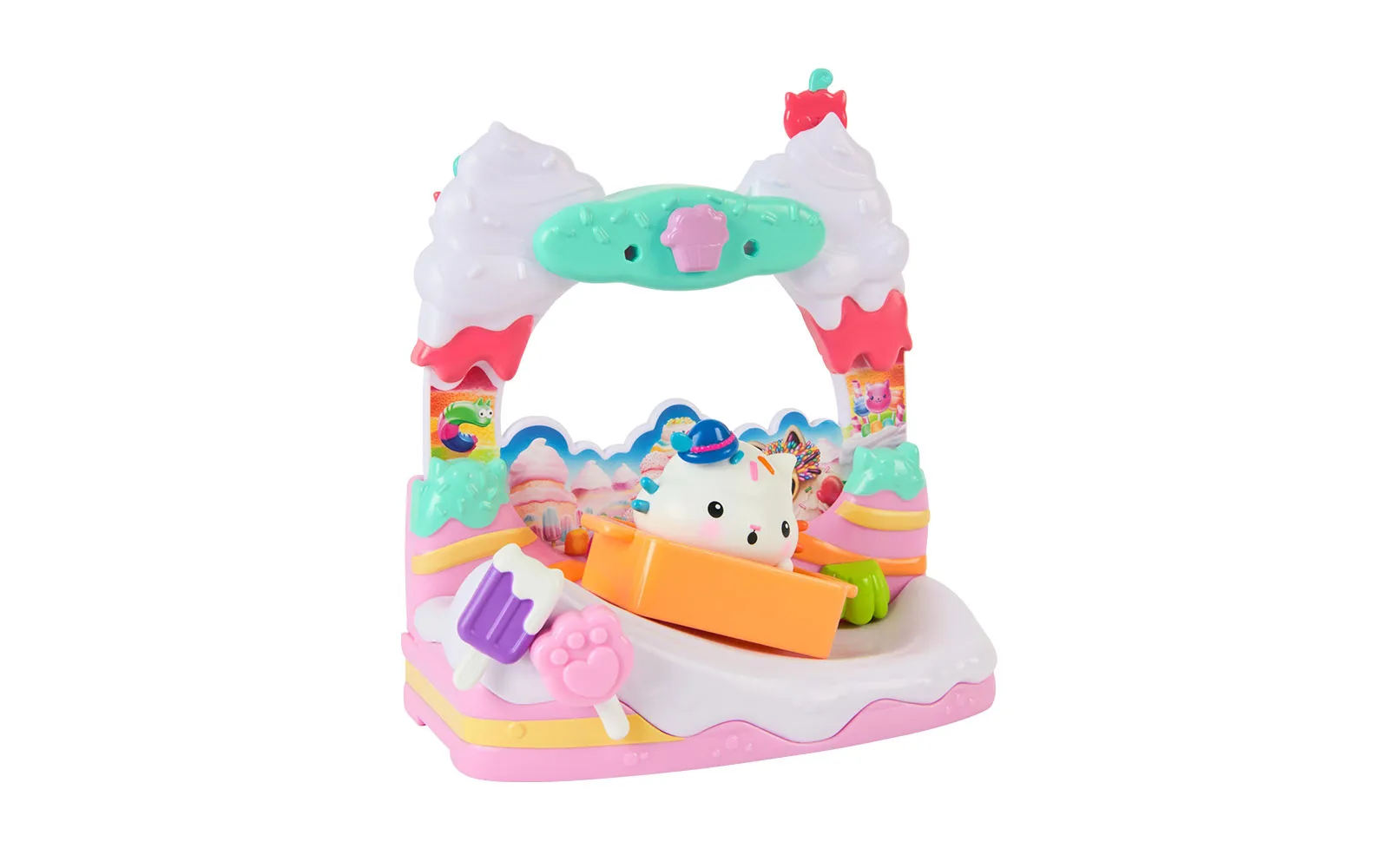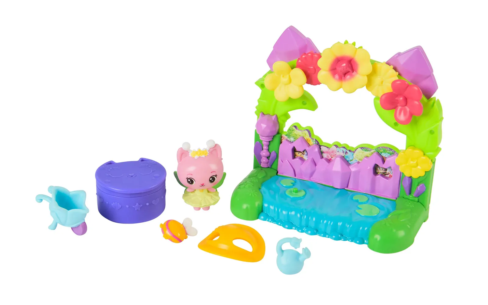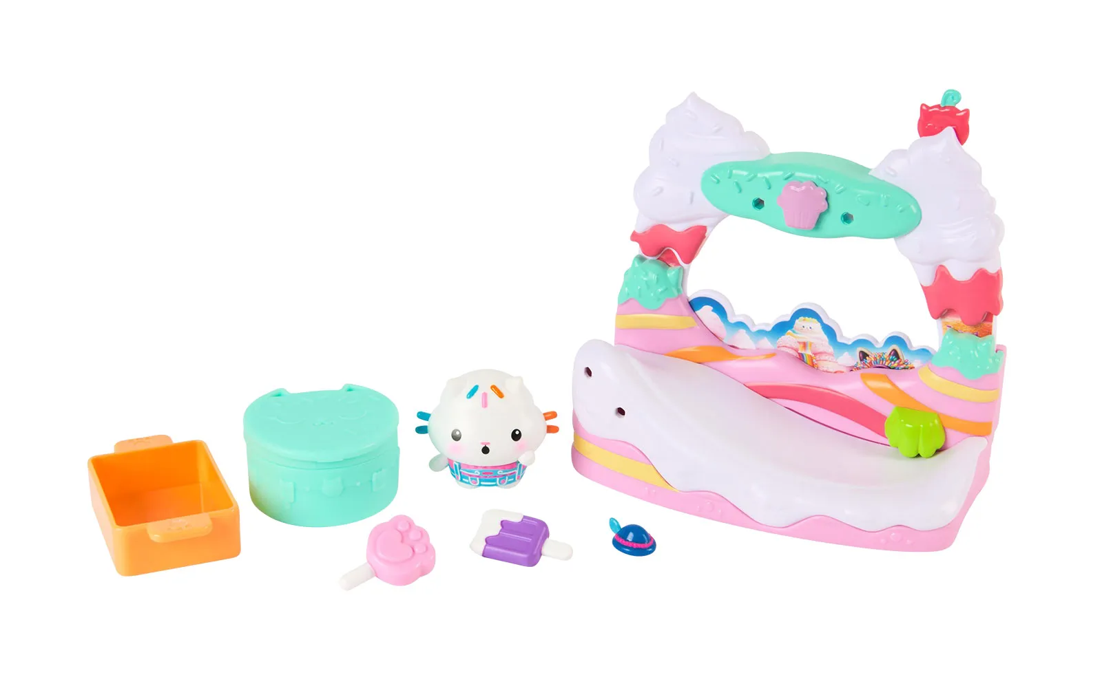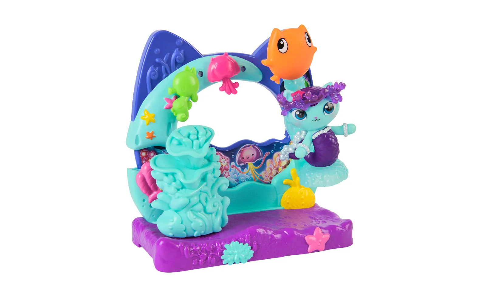 Balcony movie, Gabby's dollhouse. With the balcony set, you get to know new characters from the movie Gabby's dollhouse, while the balconies have different moving elements. You can choose between Aquarium World, Crystal Garden World or Confectionary World. With the balconies, you can update your own Gabby's dollhouse.