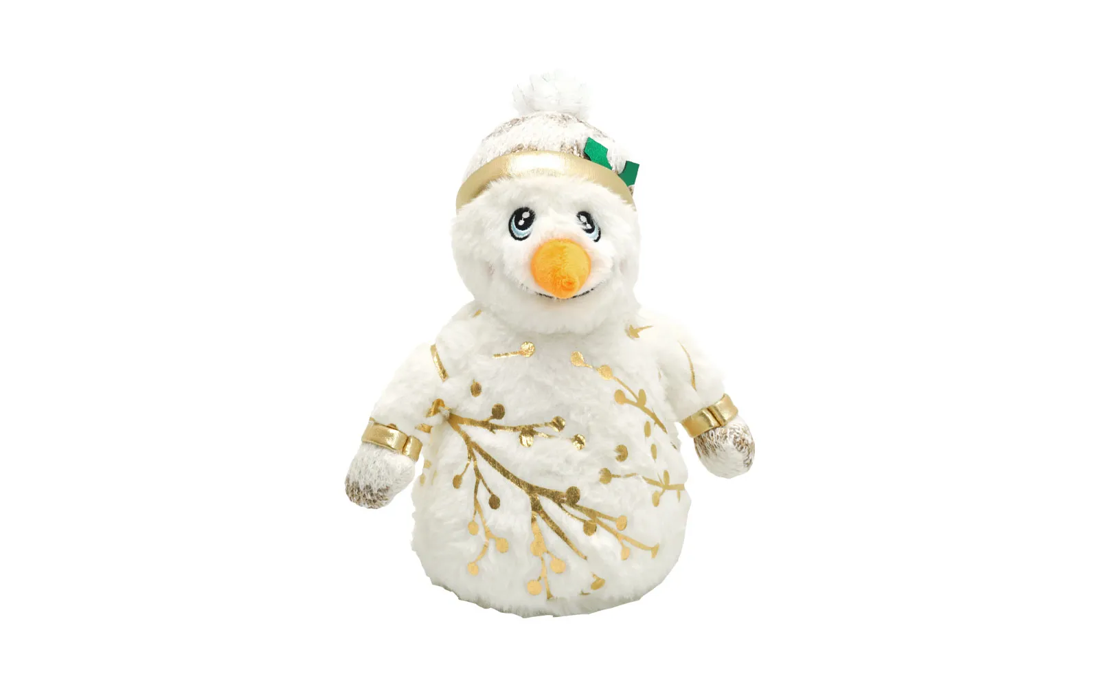 The snowman is 23 centimeters in size and white in color. It has a warm cap, a smile, and round buttons, as well as wonderful gold details that give it a festive glow. The snowman is exceptionally soft to the touch, so it will be a perfect companion for winter days and festive decoration of your home!
