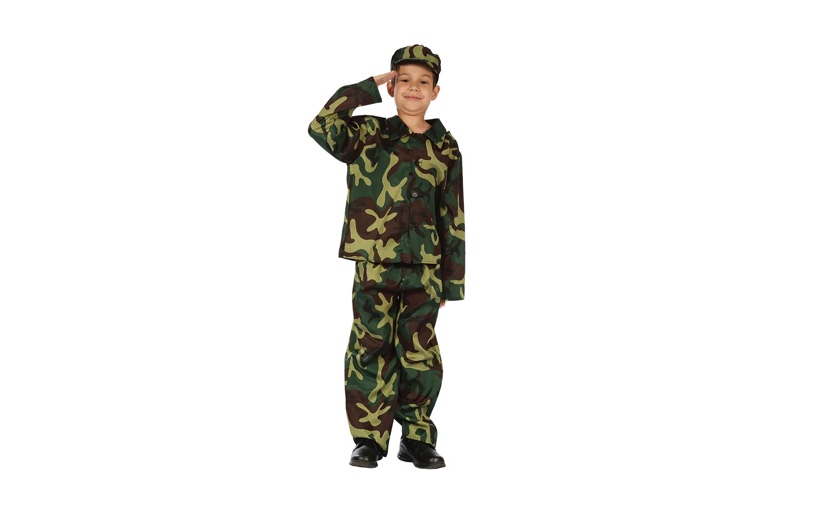A realistic soldier costume, suitable for carnival parties and military themed events. Includes a military uniform with a hat that emphasize the military style and functionality.