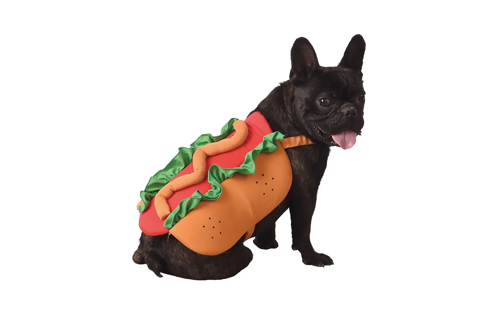 A fun hot dog costume for your pet, ideal for carnival parties or photography. Made from soft and comfortable materials that do not hinder your pet's movement.