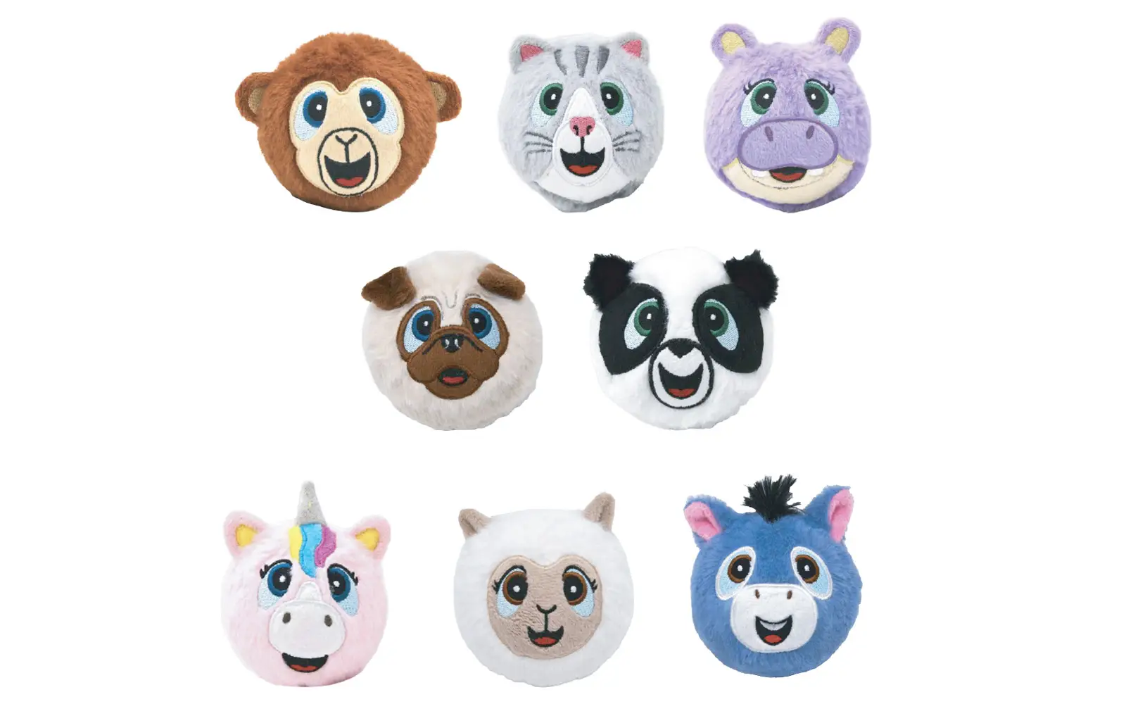 Bounce plush ball, 7 cm, Squizi, Unikatoy. Choose your ball motif and play with friends. Available in the styles of Charlie, Trish, Doug, Petunia, Dazzle, Meimei, Hughie, and Fluffy.