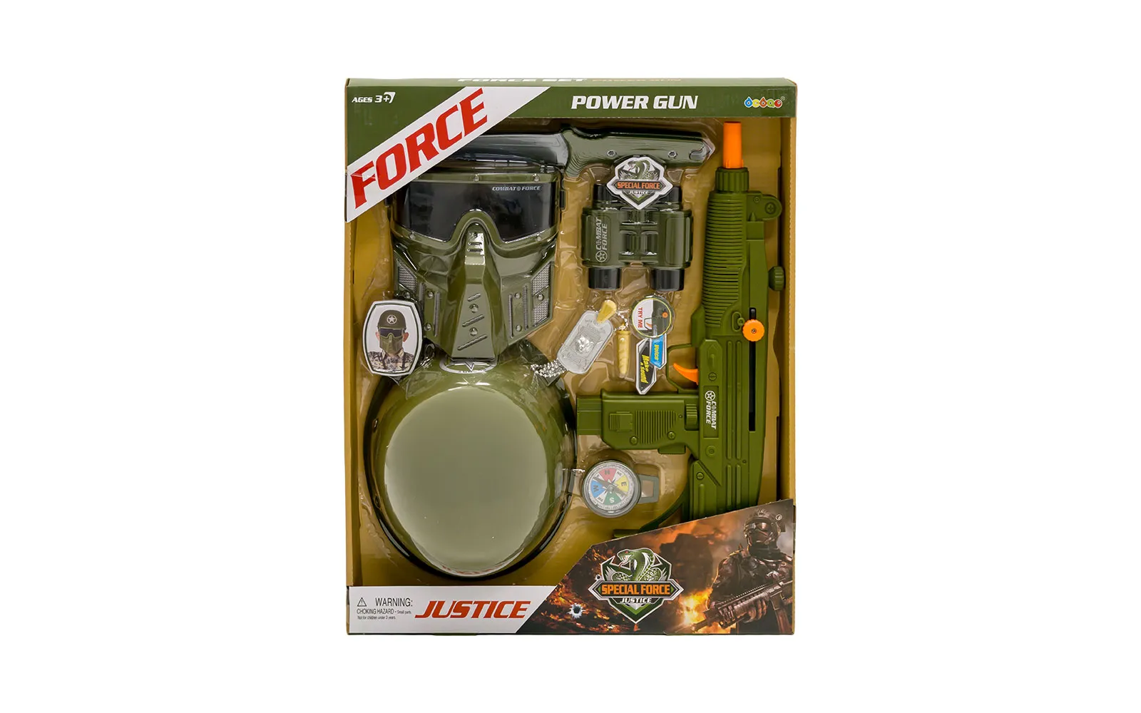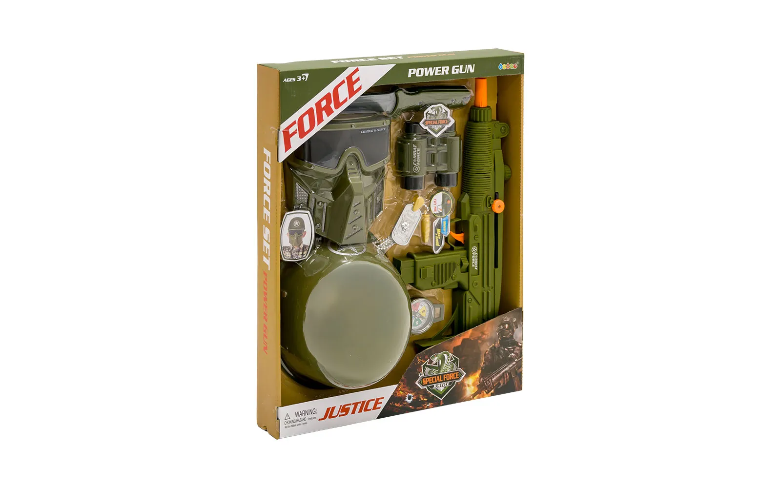 Feel like a real soldier with excellent military accessories. The carnival military set with a helmet is perfect for children who want to become soldiers for carnival. The set includes a helmet, rifle, compass, binoculars, and other great military accessories.