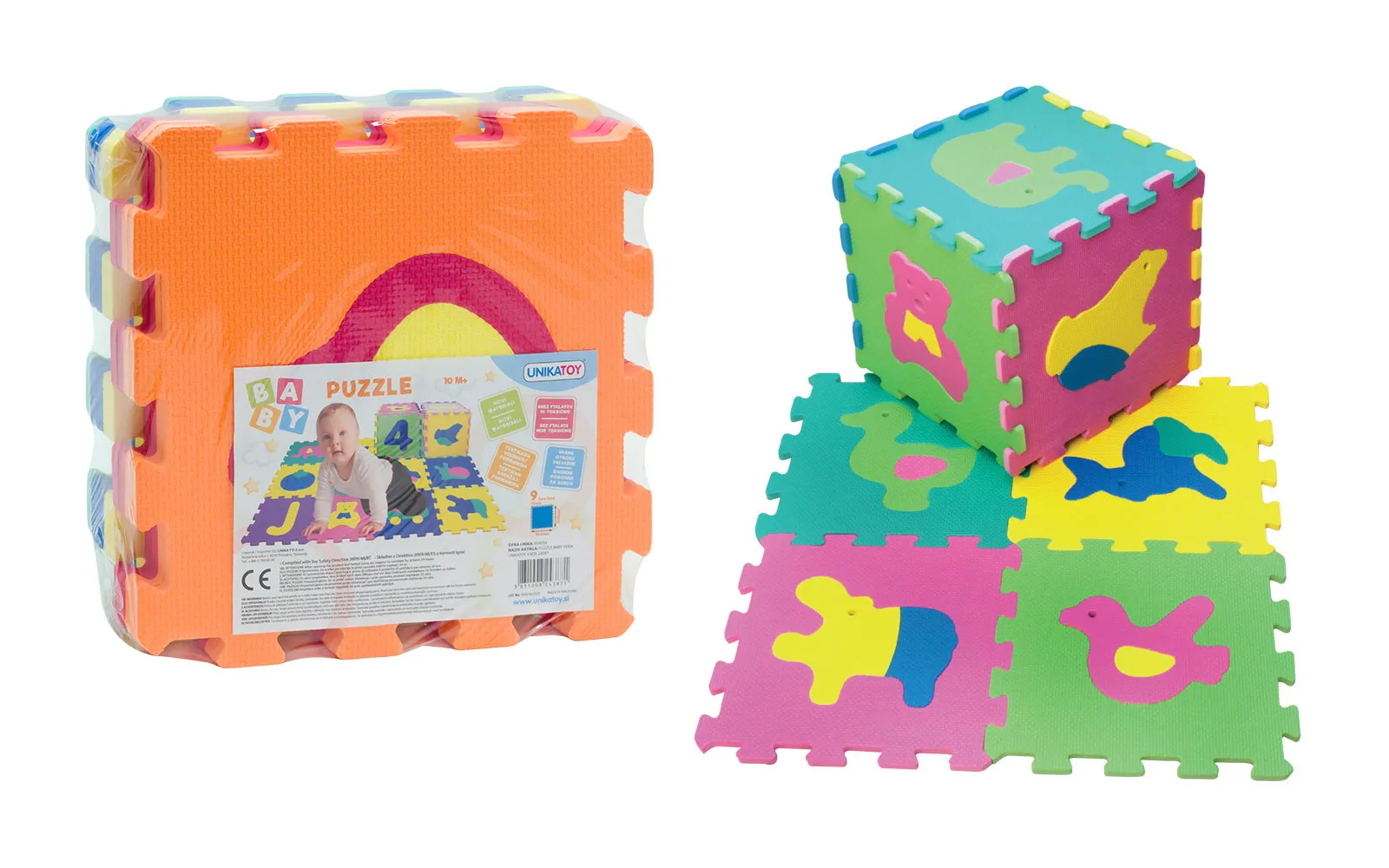 Foam boards of various animal motifs, numbers, letters and means of transport are suitable for children from 10 months of age. The size of one plate is 300x10x300 mm. There are 9 plates in the set.